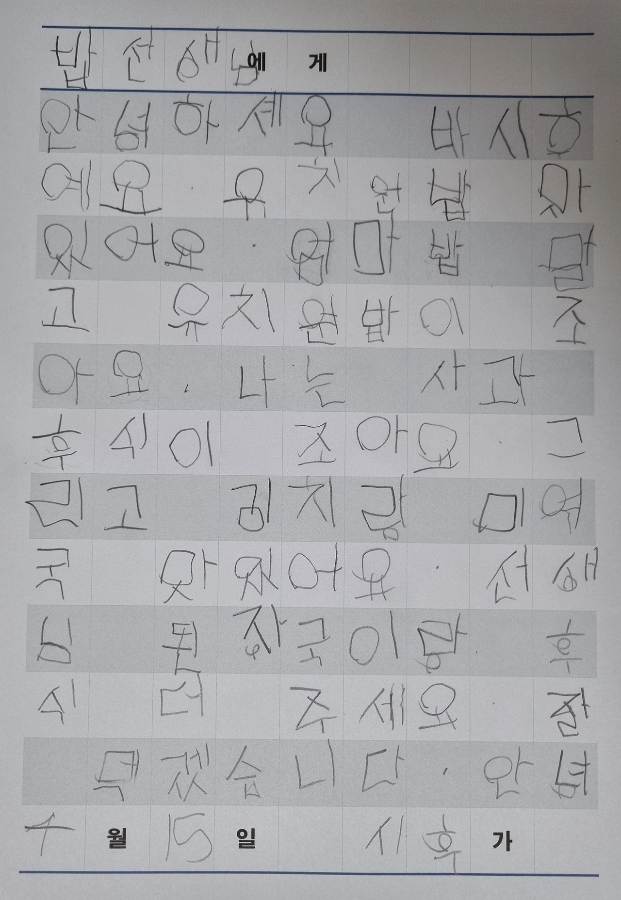 밥 선생님께 편지를 쓰고 싶단다.