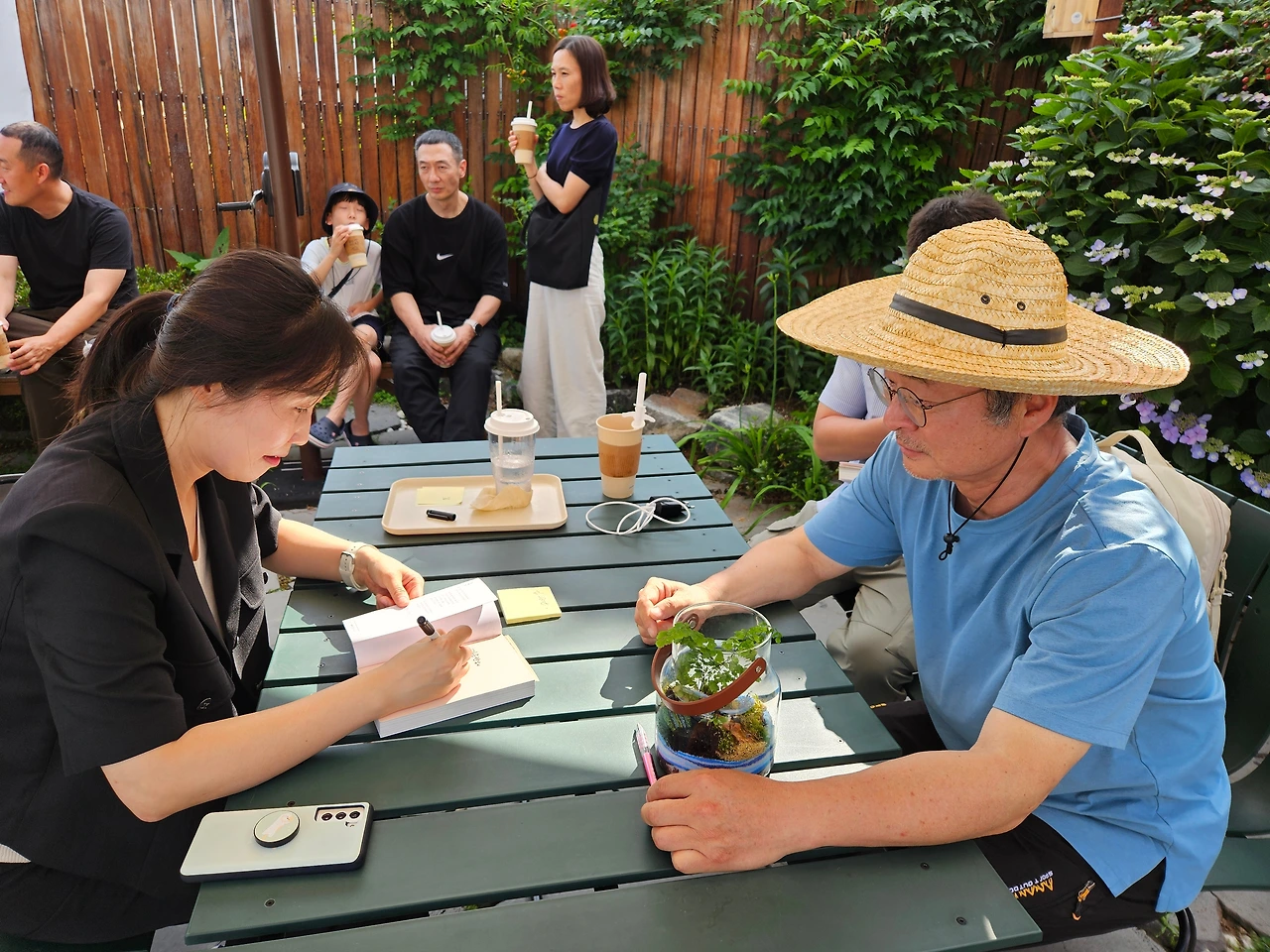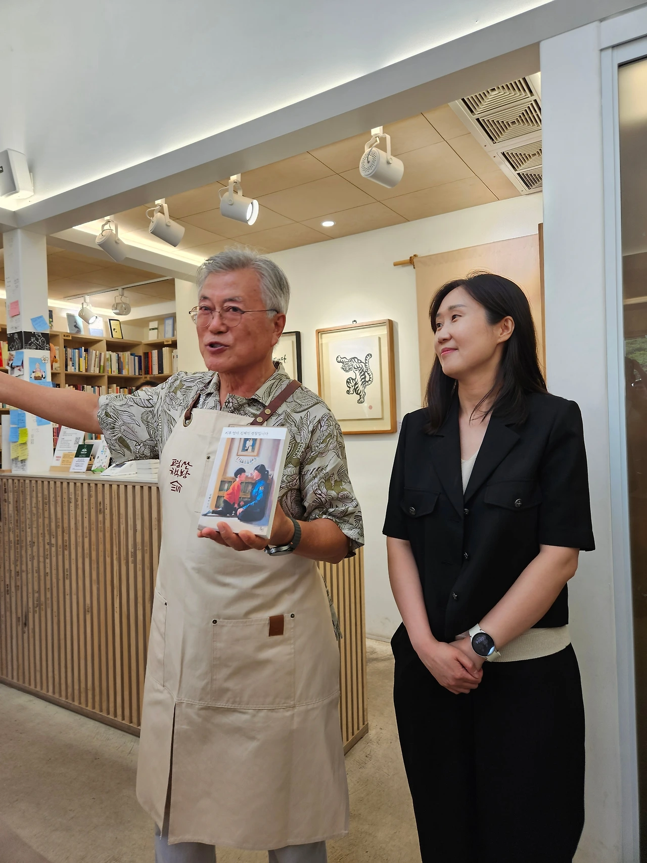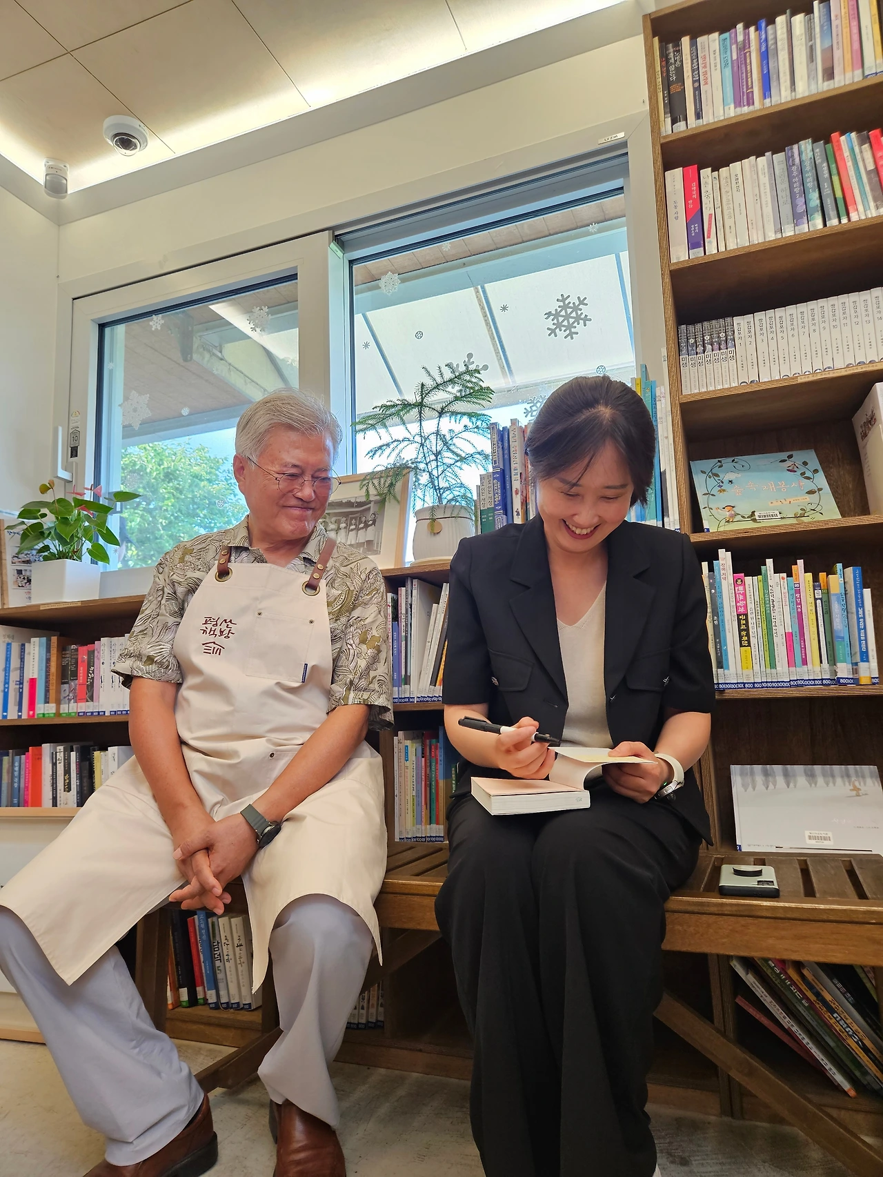 책사랑방 앞에서 깜짝 사인회를 마치고 책방 안으로 들어왔다. 그리고 책방 안 깊숙한 언저리, 조용하고 아담한 공간에 앉아 계시던 문재인 전 대통령은 내게 손짓했다.