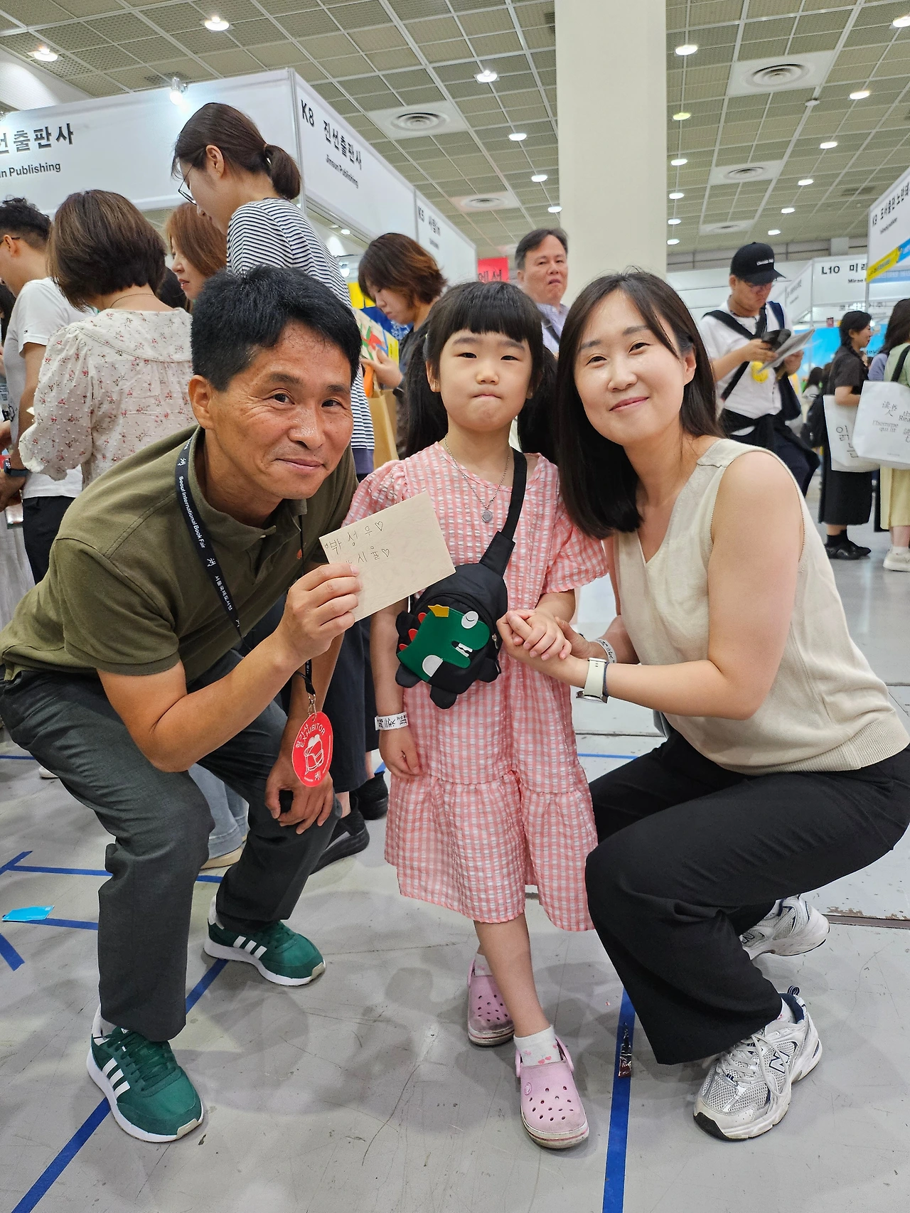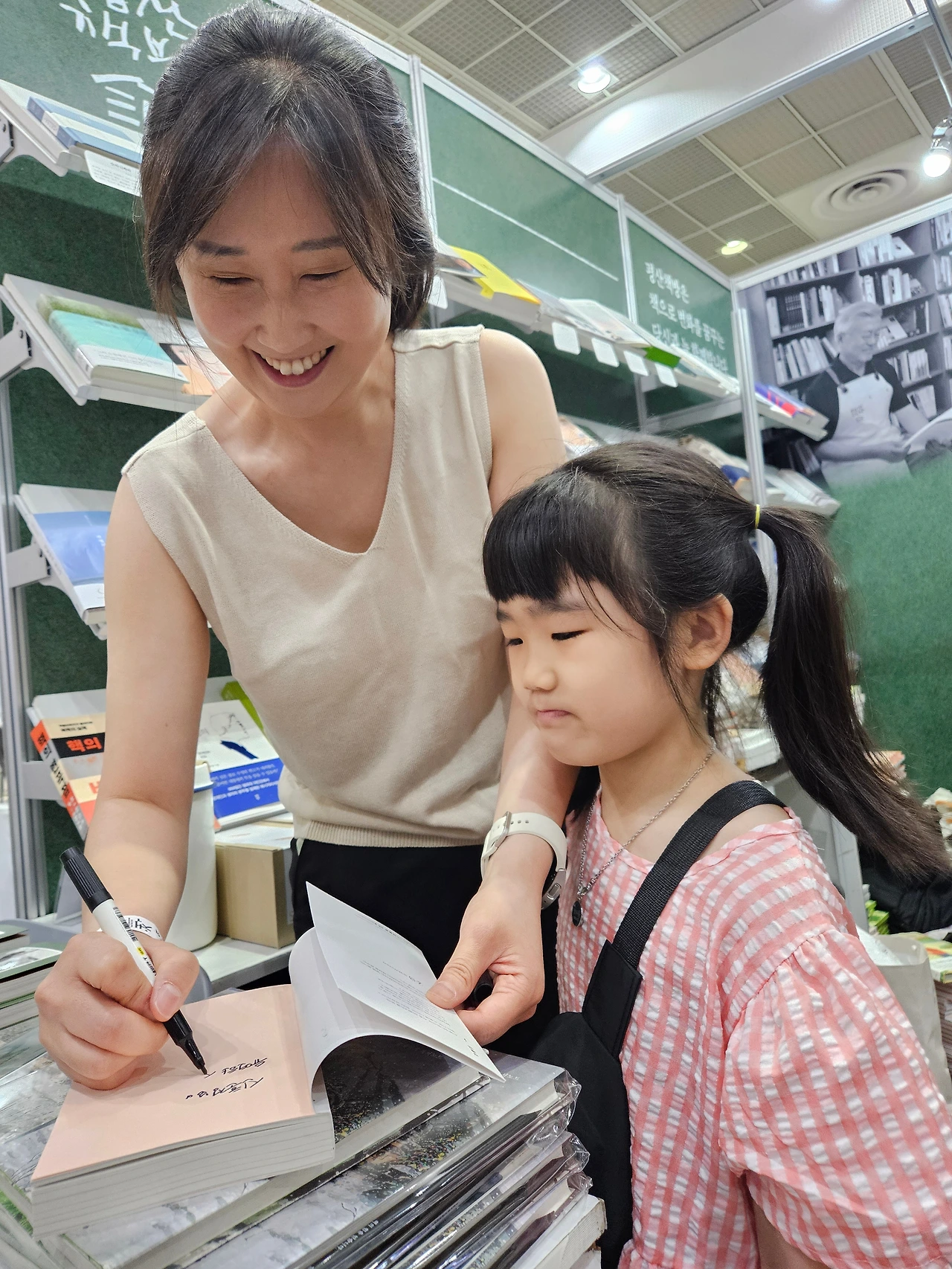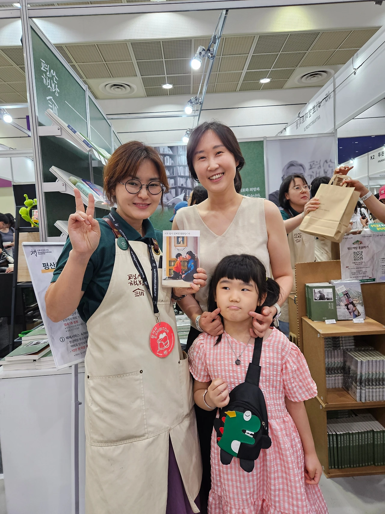 지난 평산책방에서 감사함을 전하고자 시율의 손을 잡고 핫한 2025년 국제도서전을 찾았다. 볼거리, 놀거리 가득한 곳에 아이는 현장에 들어가기도 전에 이미 어깨에 즐거움이 가득했다. 엄마 책을 보고 싶다는 아이의 성화에 평산책방 부스부터 찾기 시작했다.