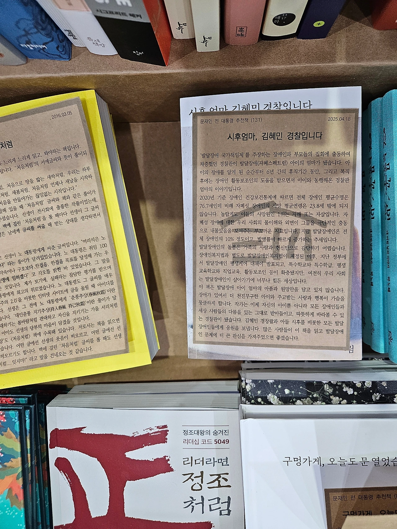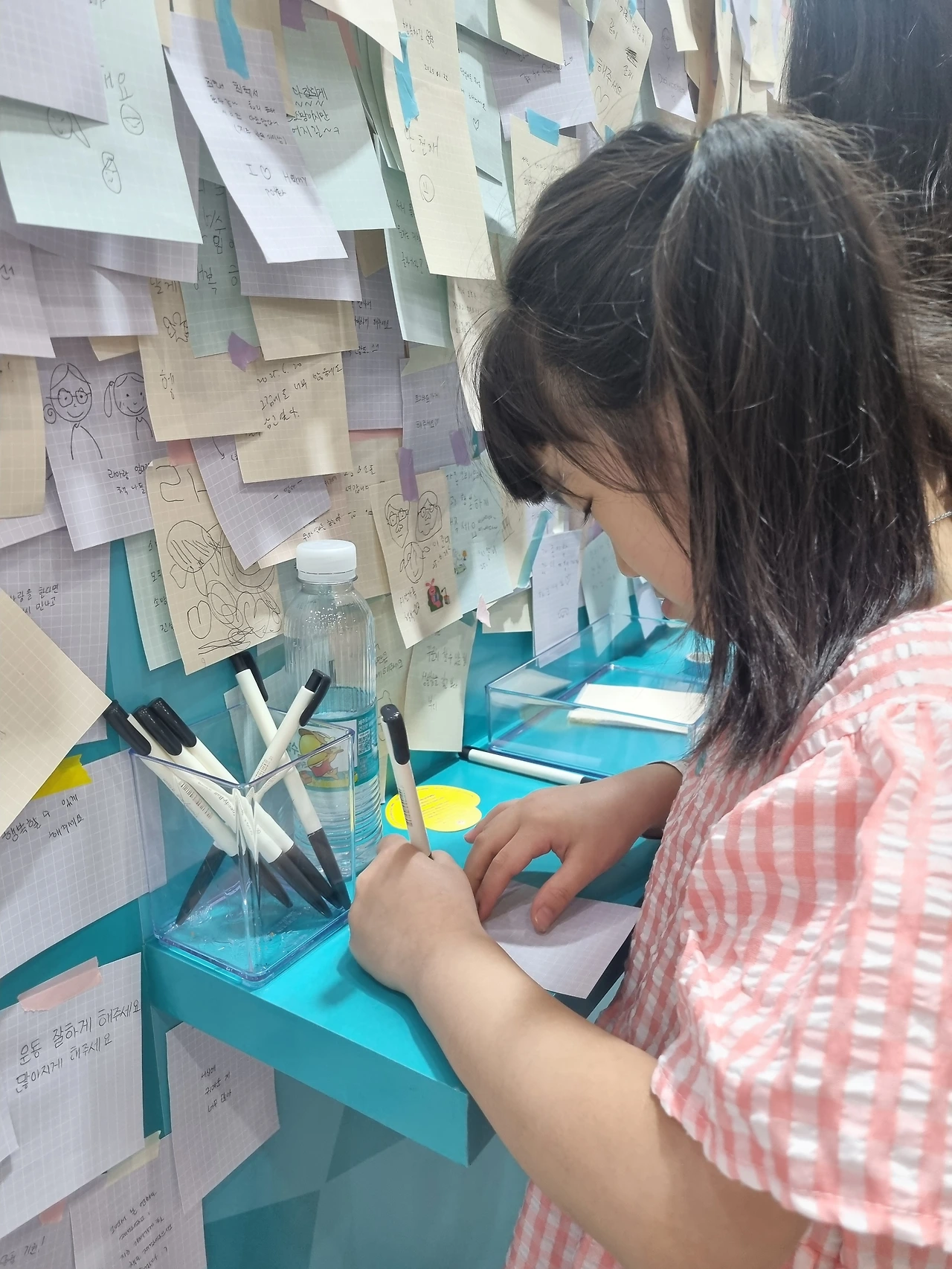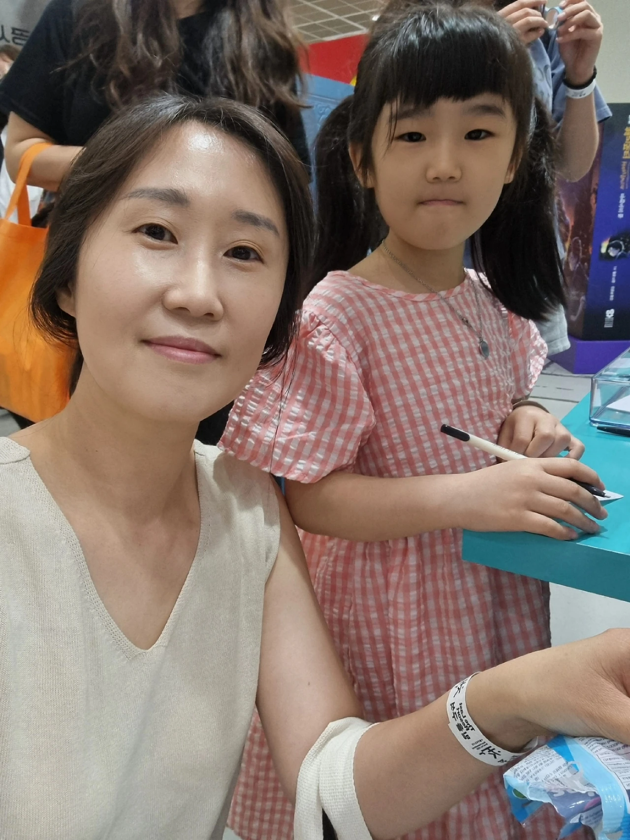 지난 평산책방에서 감사함을 전하고자 시율의 손을 잡고 핫한 2025년 국제도서전을 찾았다. 볼거리, 놀거리 가득한 곳에 아이는 현장에 들어가기도 전에 이미 어깨에 즐거움이 가득했다. 엄마 책을 보고 싶다는 아이의 성화에 평산책방 부스부터 찾기 시작했다.