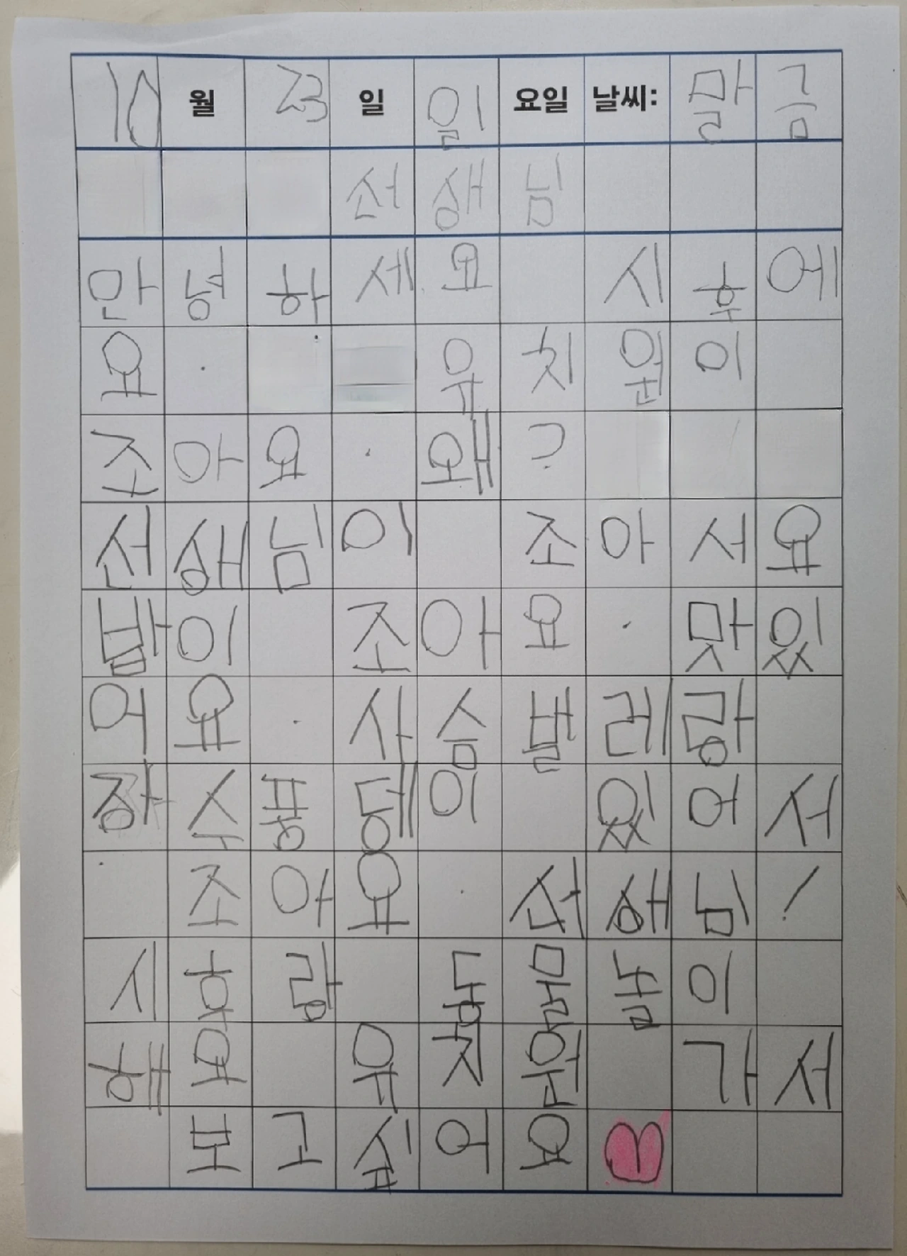 오늘도 역시, 집으로 와서 선생님께 편지를 쓴다. 내 아이의 취미는 선생님께 편지 쓰기다. 사마귀랑 장수풍뎅이가 싸우면 누가 이기냐, 선생님은 홍차를 좋아하느냐 등 시시콜콜한 이야기를 편지지에 주욱 써 내려간다. 그리고 고민하다 조심스레 하원 때 넌지시 드렸다. 그러면 선생님은 귀여워 미치겠다는 표정과 업된 목소리로 늘 한결같이 사랑을 듬뿍 주셨다.