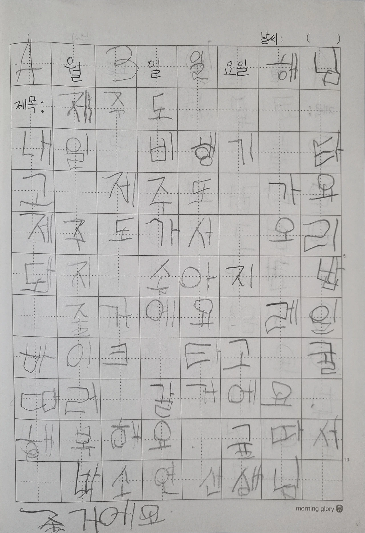 “가니 타고 비행기 타고 제주도 가고 싶어요.”