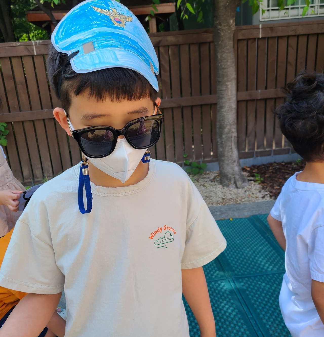 각 잡힌 근무복을 입은 경찰에 친구들은 사뭇 긴장한 표정이다.