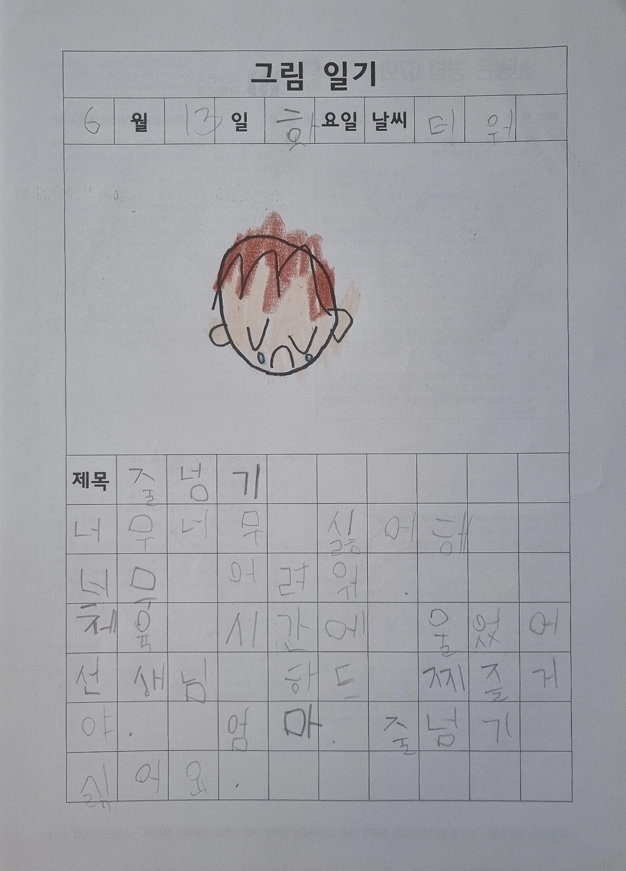 결국 드러눕기 시전을 펼쳤다. 자기 딴에 꽤나 머리 써서 취한 행동이었으나, 체대 나온 젊은 남자 선생님에겐 통할 리 없었다.