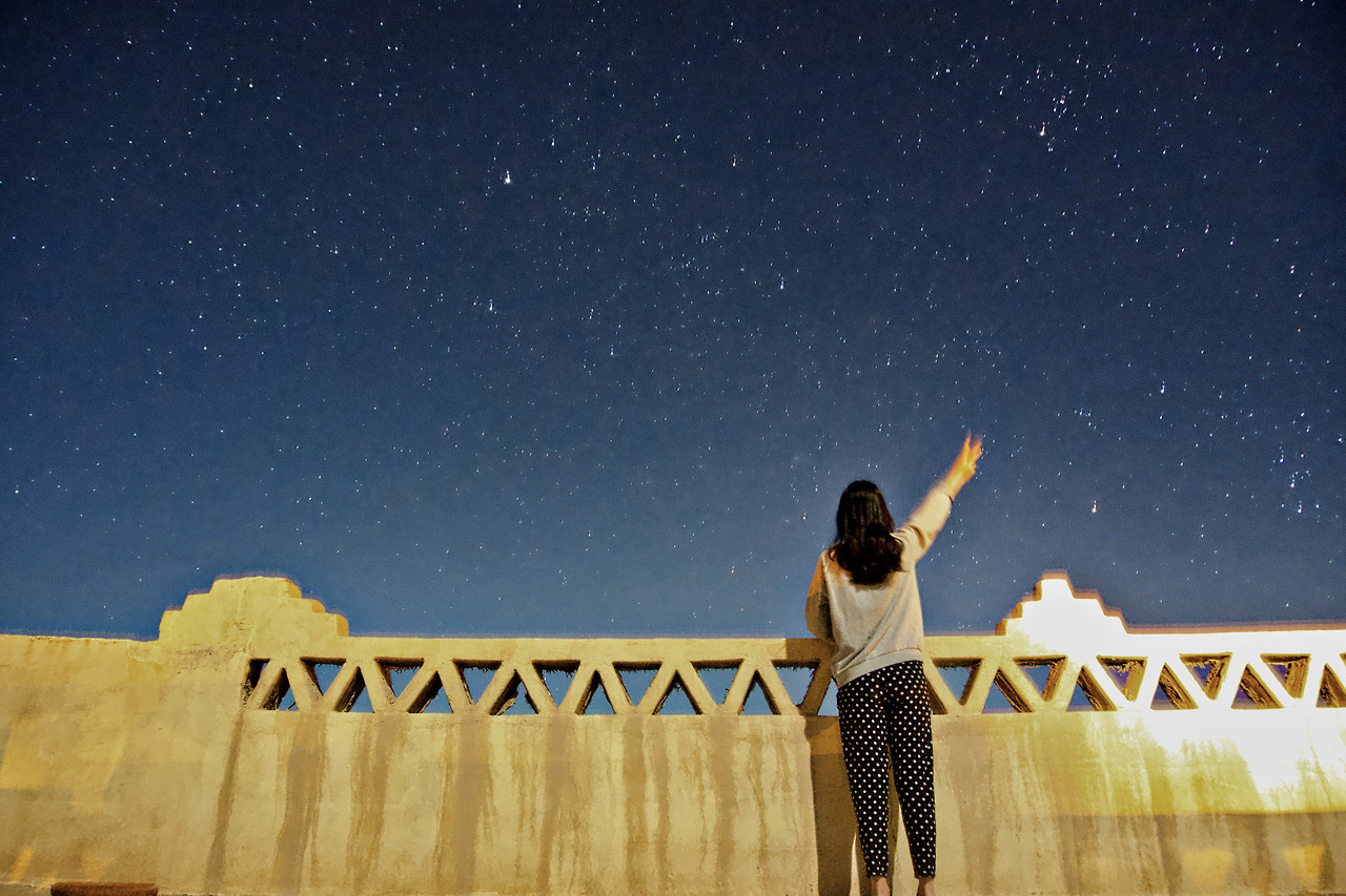 라고 했다. 해가 진다는 건 많이 들어봤어도 달이지는 건 난생처음 들어 본 표현이었다. 내가 의아해하는 표정을 짓고 있으니, 사이드는 웃으면서 오늘은 새벽 2~3시쯤이면 달이 질 것 같으니깐, 그때까지 기다리면 은하수를 더 잘 볼 수 있을 것이라 했다. 어차피 12시간 내내 버스에서 잠만 잤던 나였기에 새벽까지 기다리는 건 어렵지 않은 일이었다. 나는 텐트에서 만난 동생들과 함께 다시 사막 언저리에 올라갔고 수다를 떨다 보니 어느덧 사이드의 말처럼 동그란 달은 사라지고 없었다.