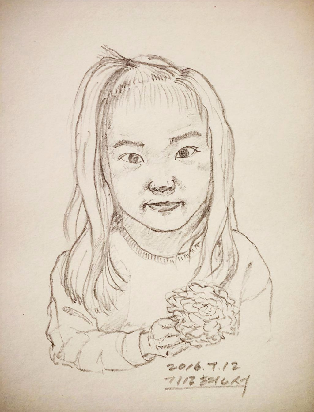 앳된 모습을 기억하고 싶어 6개월 정도마다 딸의 얼굴을 그려서 선물로 주고 있다.