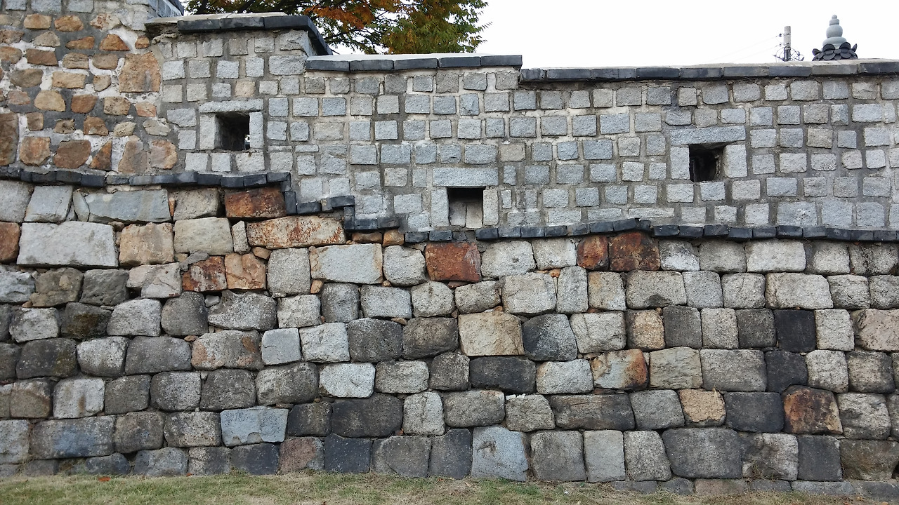 반원의 옹성은 벽돌로 쌓아 좌우 성벽의 돌과 대조를 이룬다.