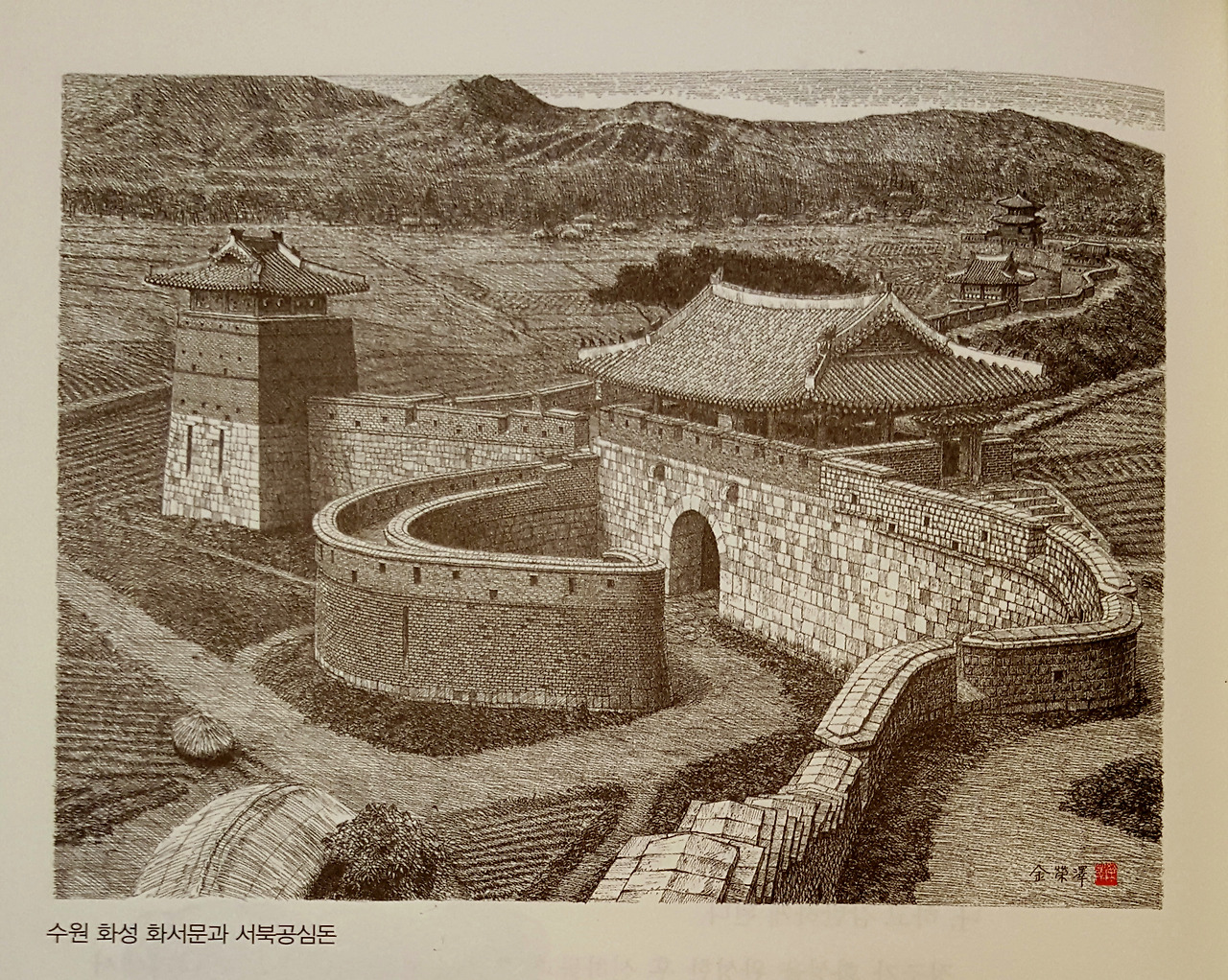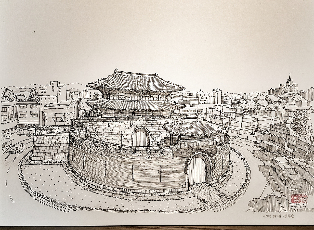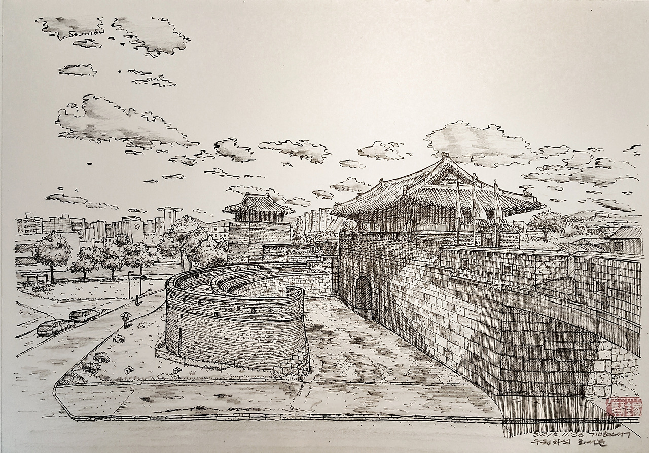수원화성을 펜으로 그려낸 펜화들이었다.