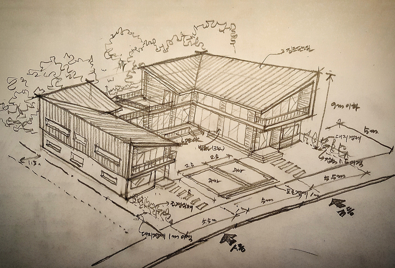 설계는 무수히 많이 변경하며 원하는 집을 만들기 위해 많은 스케치를 했다.