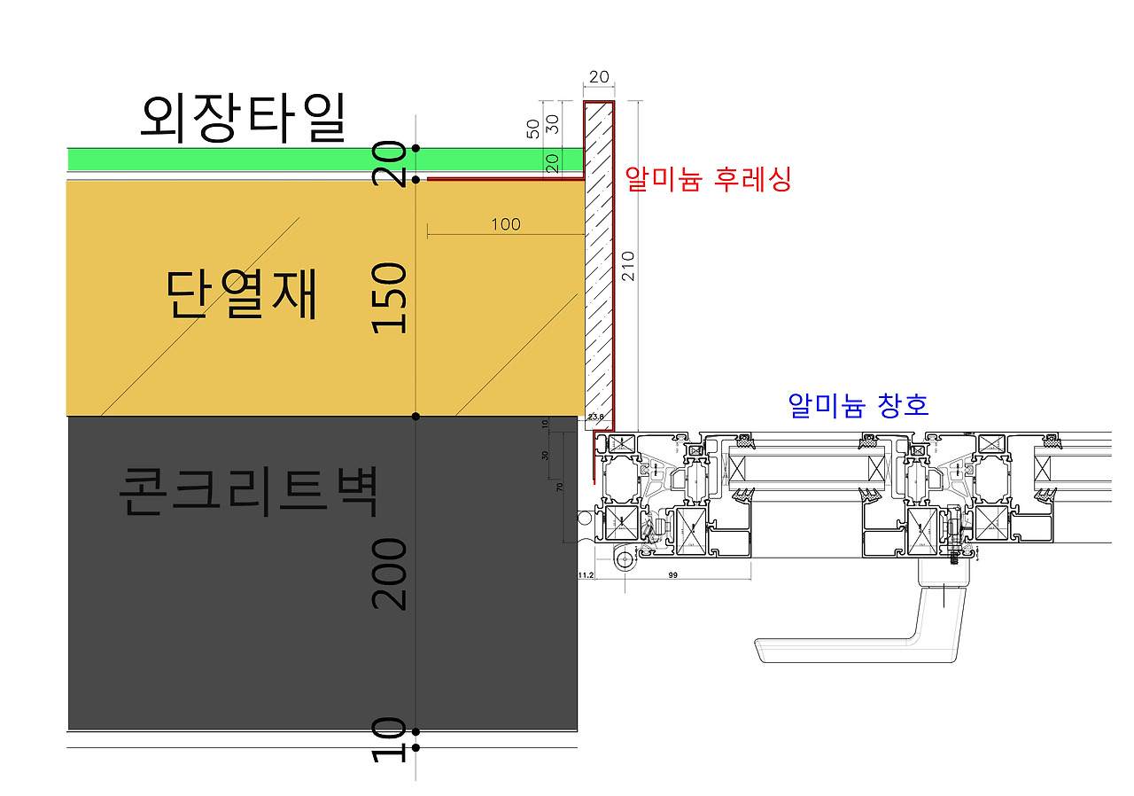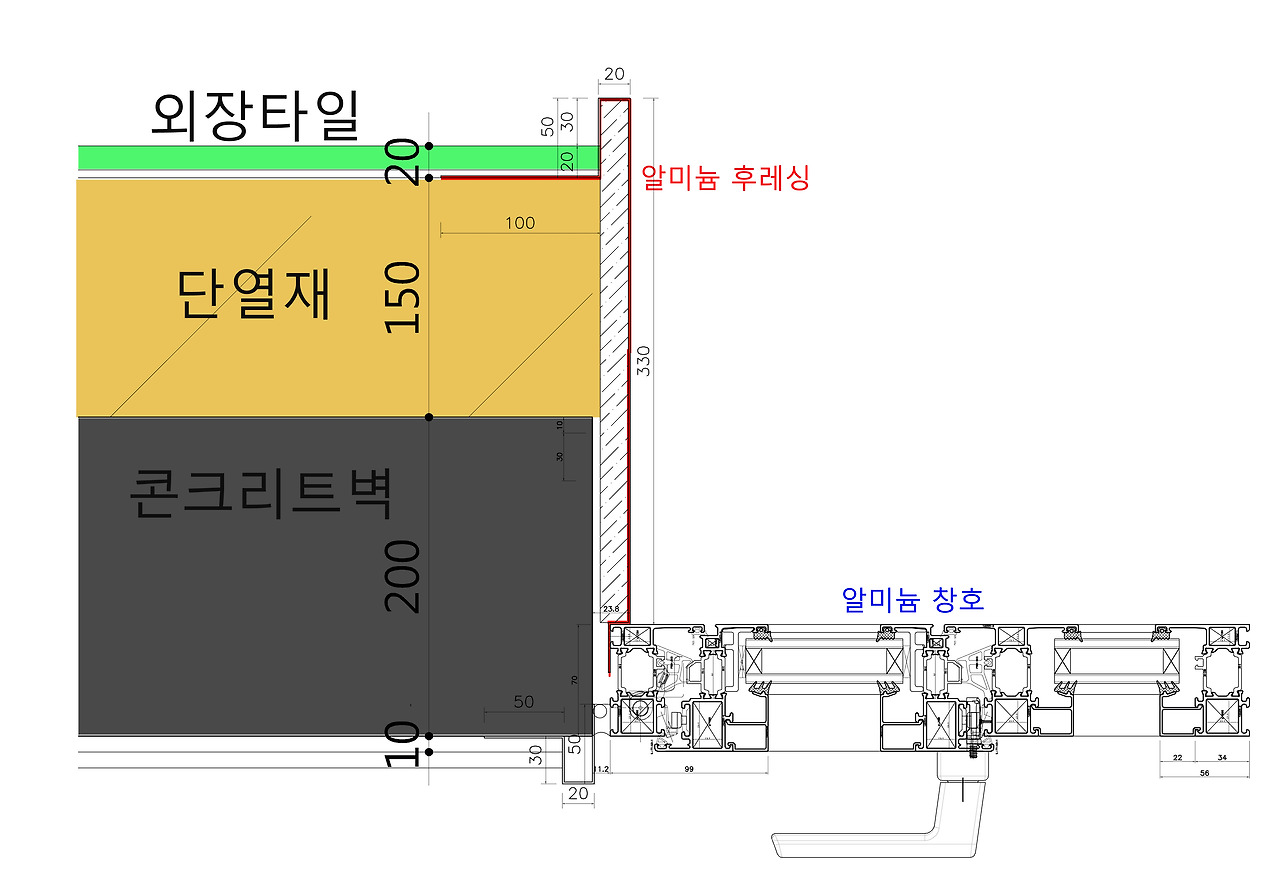 창호와 후레싱 사이의 단열 기밀성을 높이며 누수를 없애기 위해 여러 가지 디테일을 그려보았다.