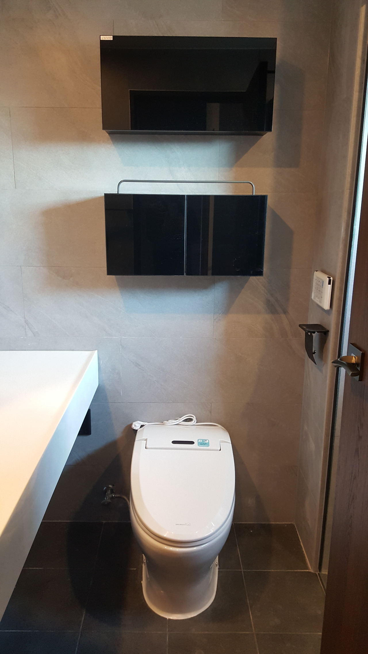 다른 2개의 욕실이 White 한 느낌인데 반해 Gray 칼라로 마감재를 적용하였다.
