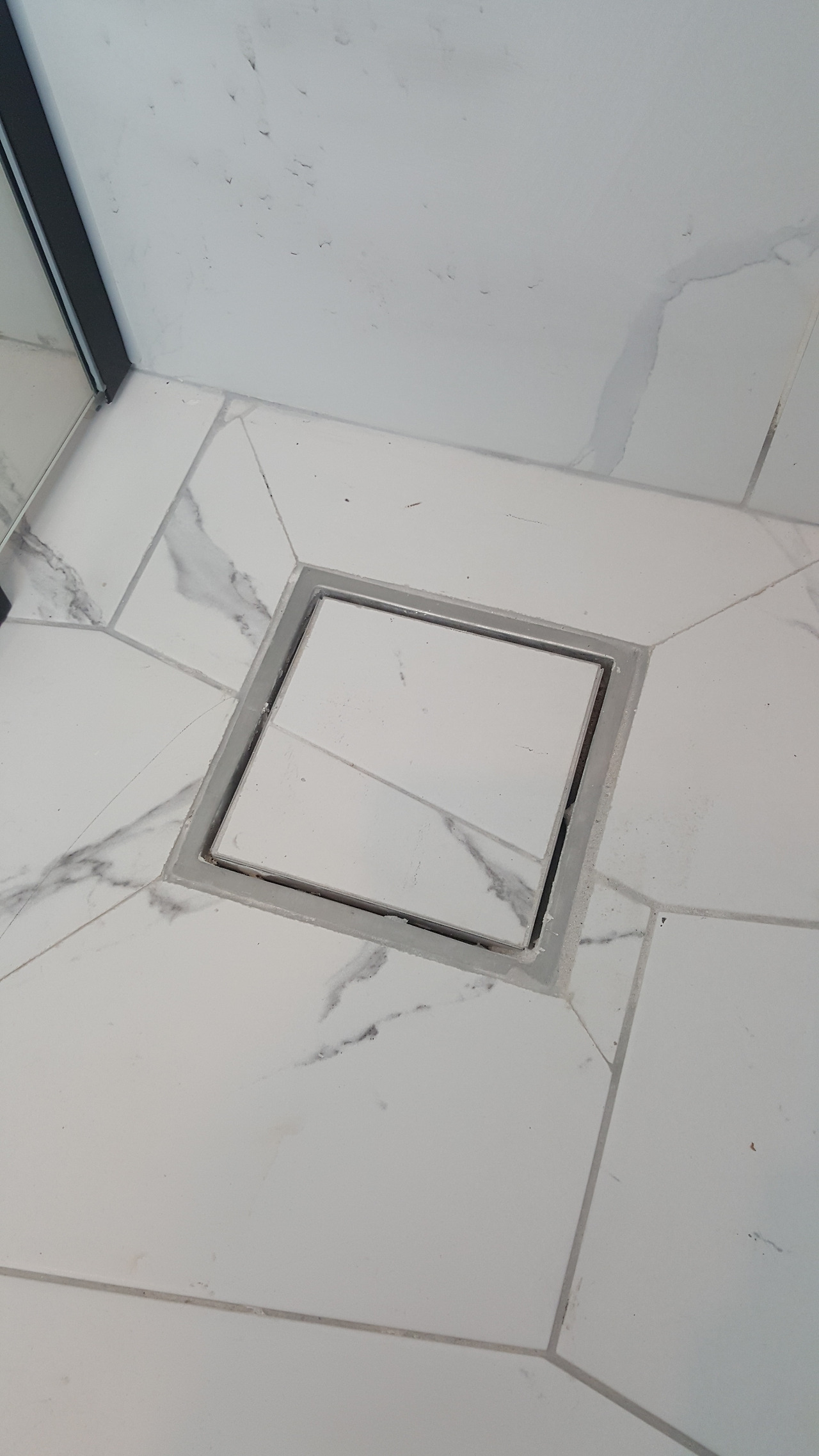 바닥 트렌치는 봉수 방식 트랩이 있어 냄새 역류를 차단하고 타일을 매입시켜 마감이 깔끔하게 되는 것을 사용했다.