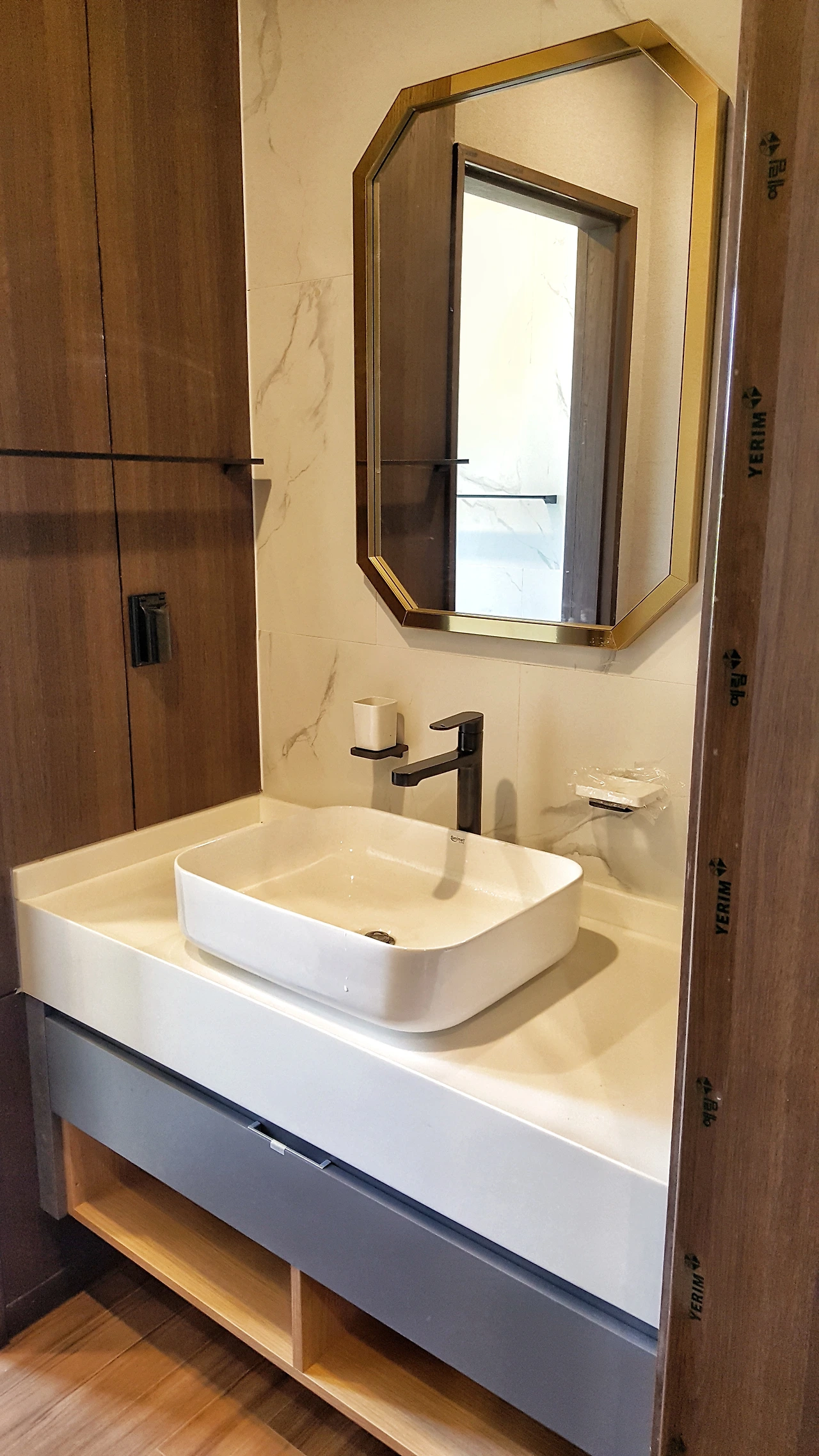 건식 세면대는 디자인에 신경을 많이 쓴 편이다. 일반적이지 않으면서 세련되게 하고 싶었다.