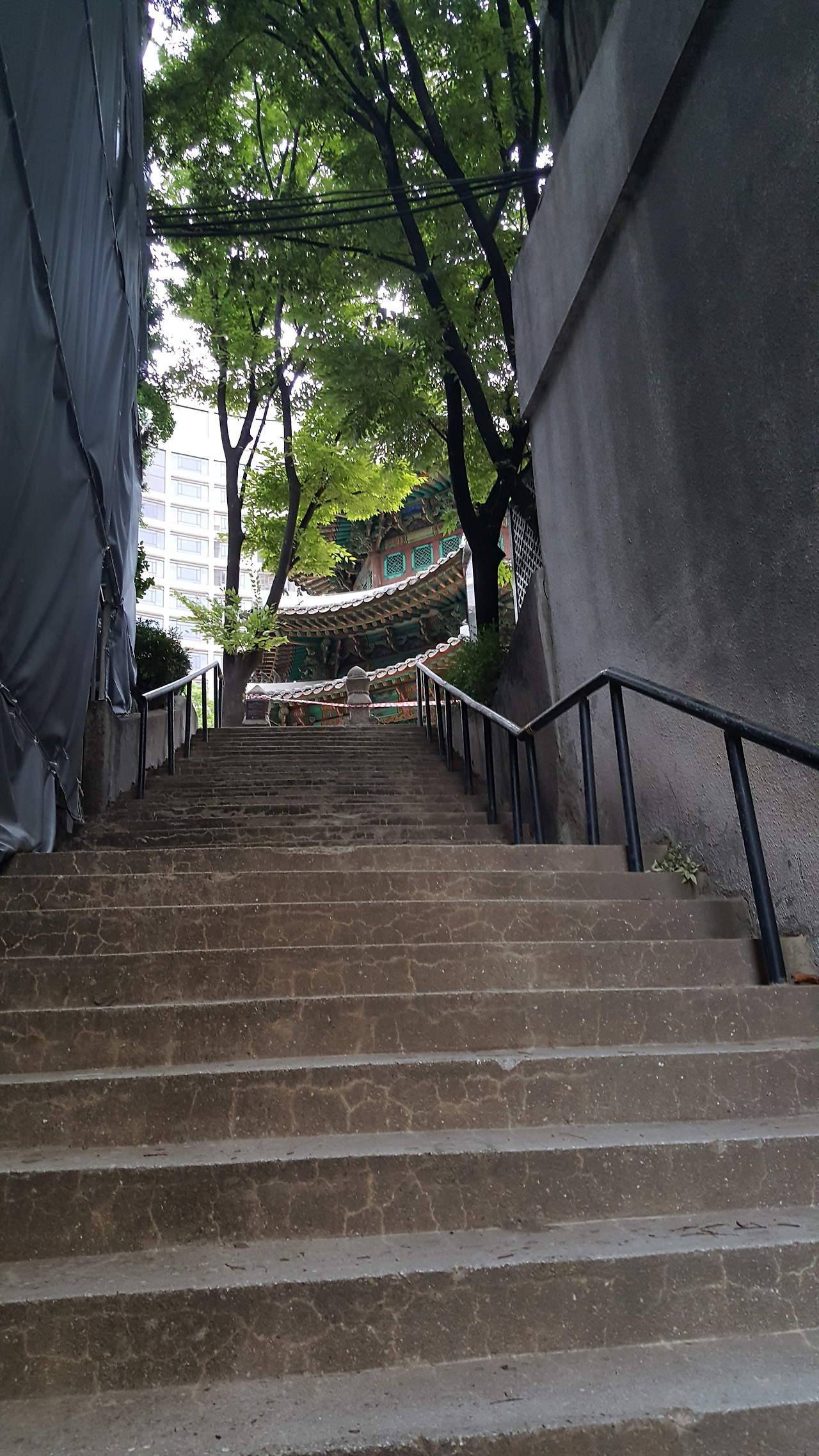 문을 지나면 건물 틈새로 가파른 계단이 보이고 끝부분에 황궁우의 처마가 모습을 드러낸다.