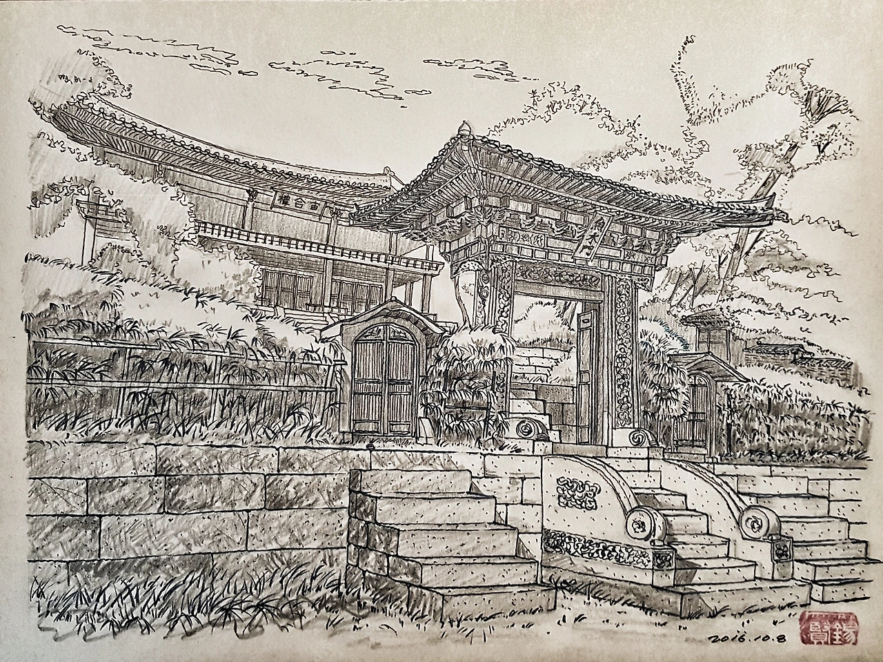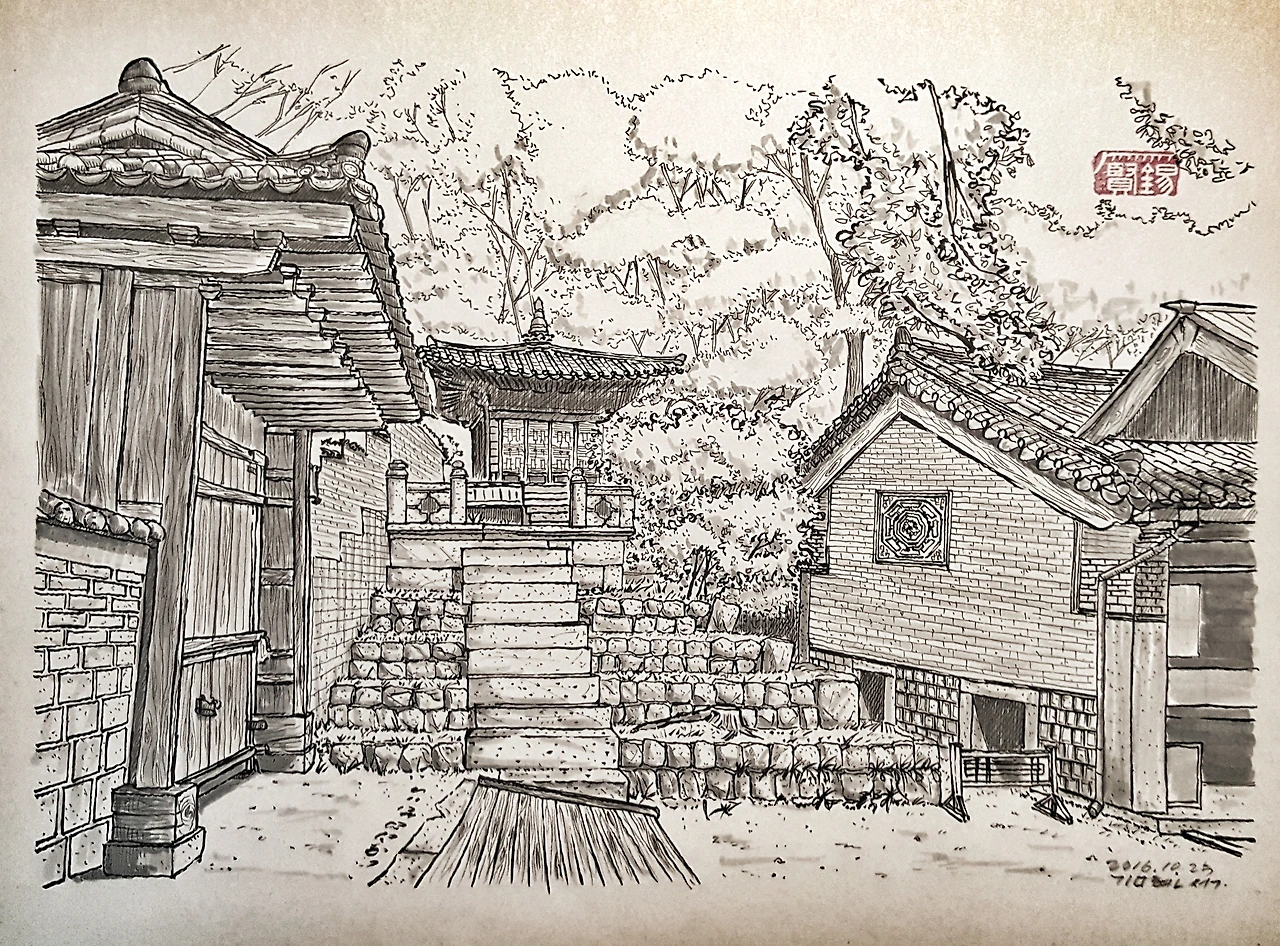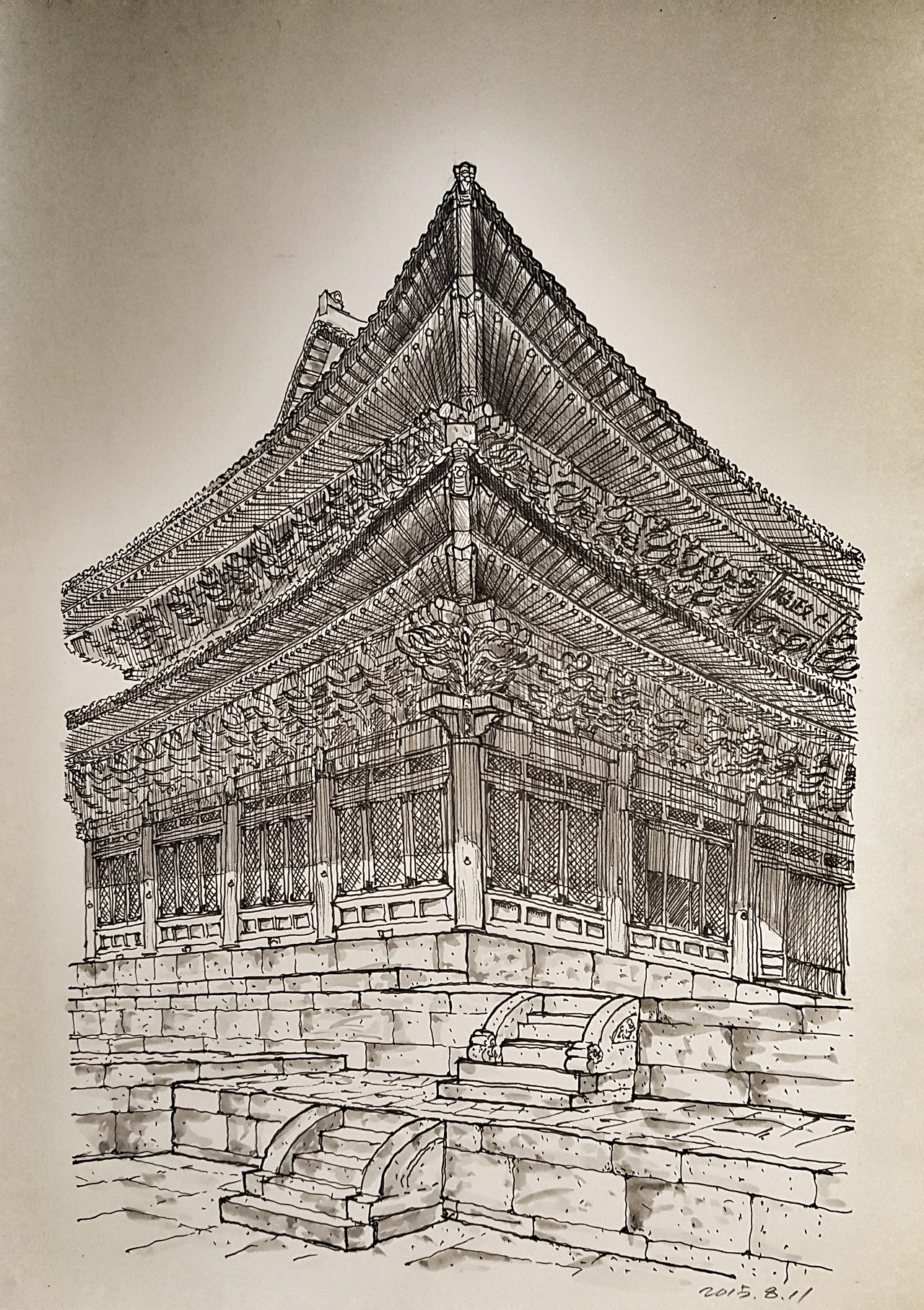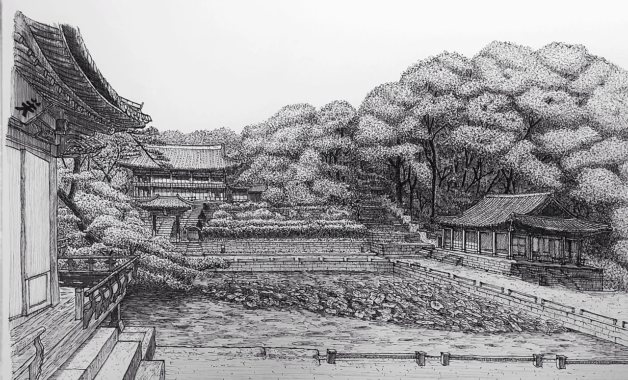 인정전 좌측 계단 스케치