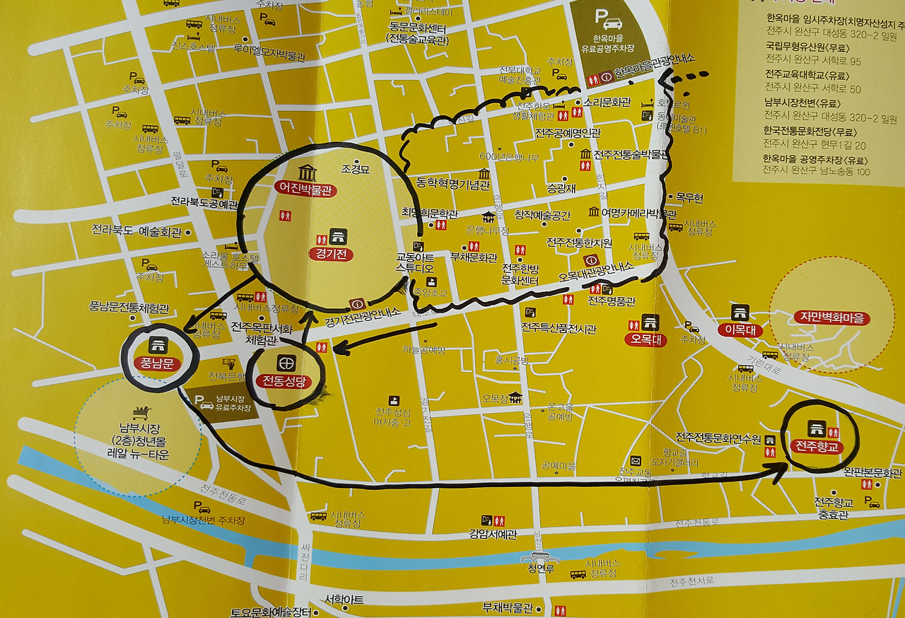 전주한옥마을-전동성당-경기전-풍남문-전주향교 코스
