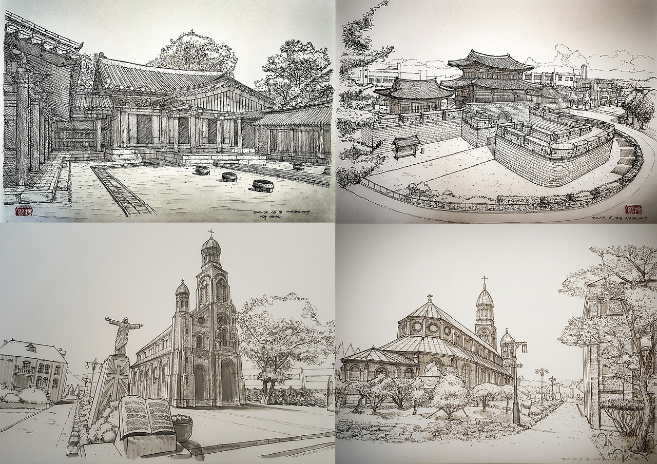 입구에서 정면을 올려보며 아주 천천히 보고 싶을 만큼 마음에 쏙 들었고 어디를 그릴지 머리가 복잡했다.