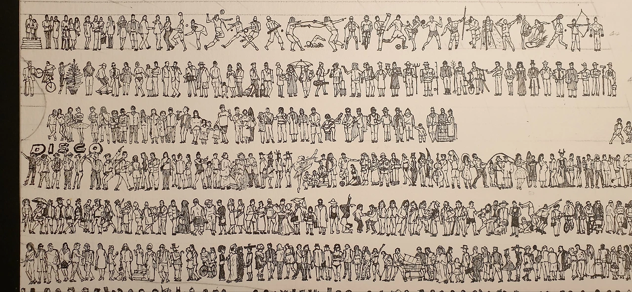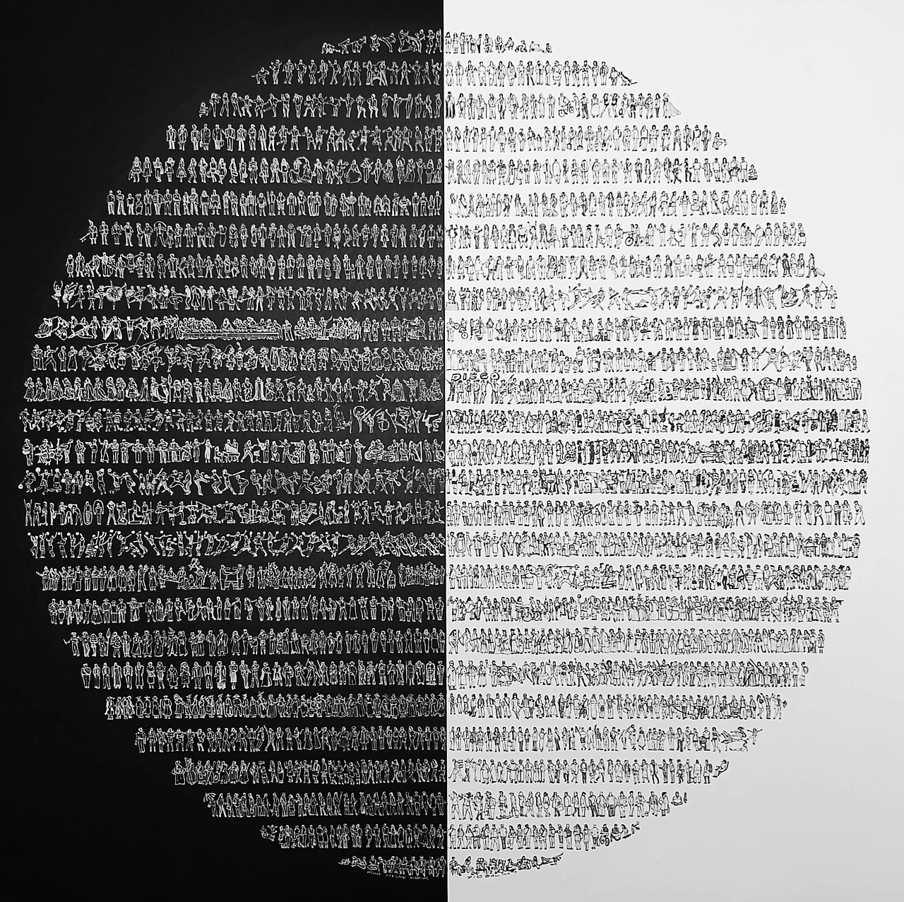 원 속에는 다양한 사람의 행동과 움직임, 인류를 바꾸고자 노력하고 이슈가 되었던 인물들, 사람들에게 감동을 주었던 예술과 세상을 바꾼 역사를 표현하였습니다.