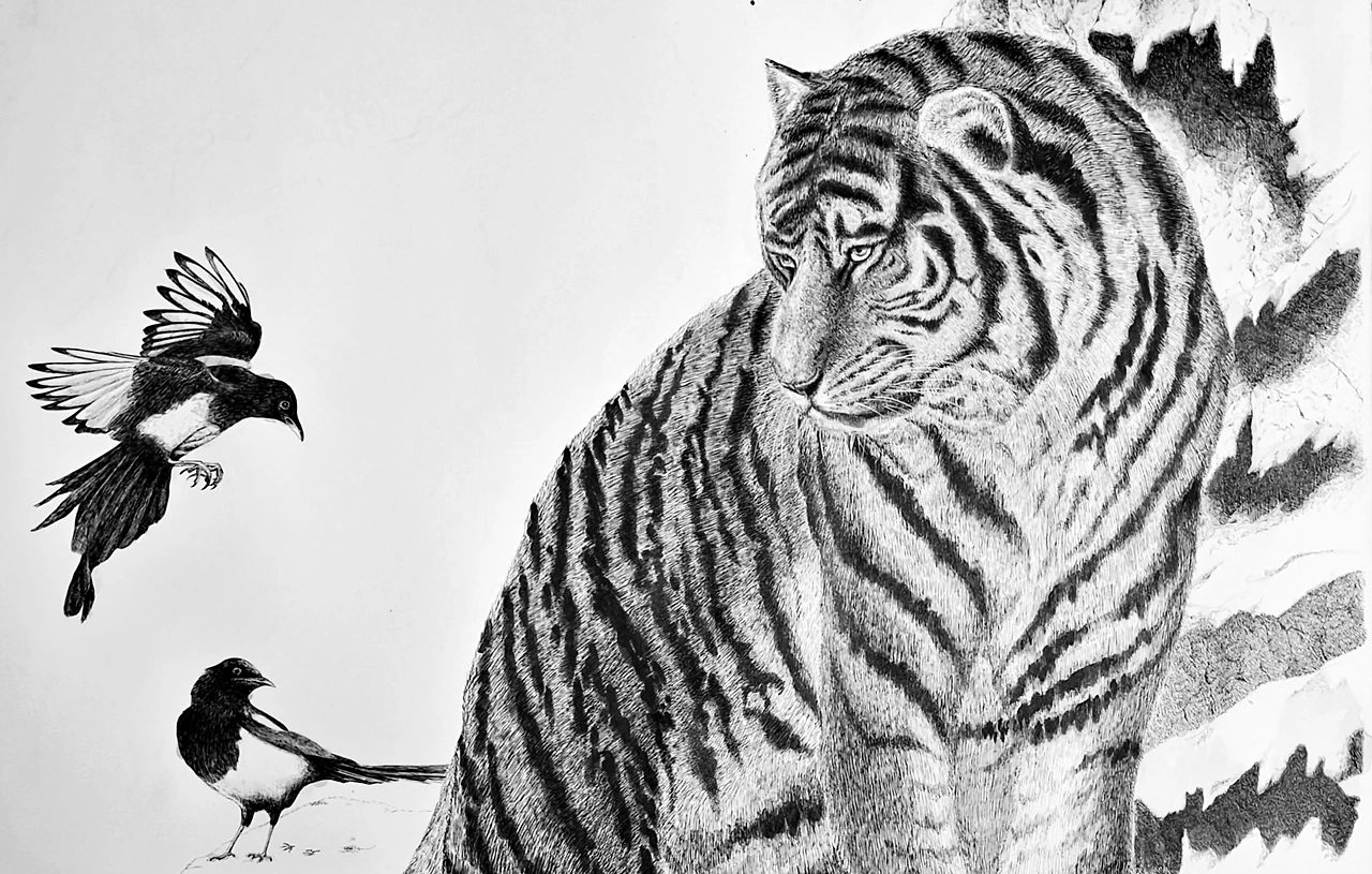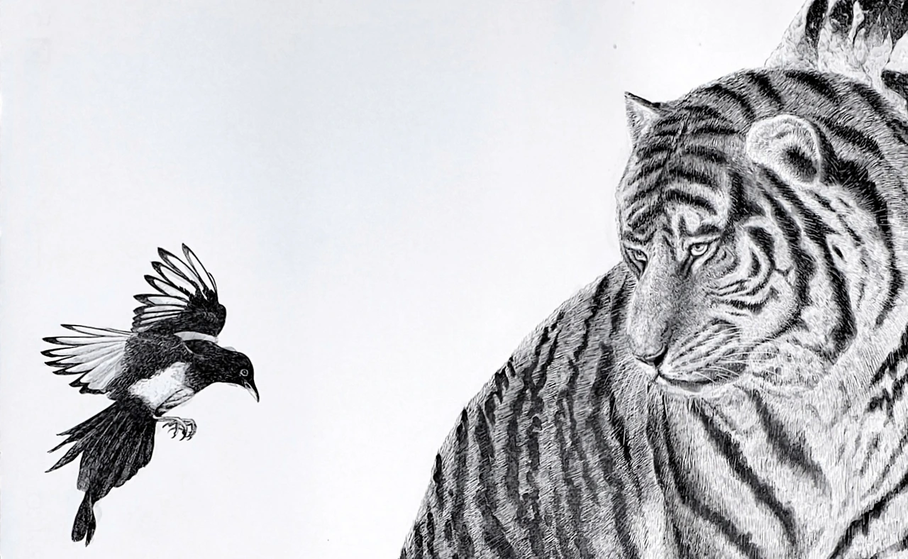 #art #artist #coloring #draw #drawing #graphic #ink #illustration #painting #paper #pen #pendrawing #sketch #sketching #sketchbook #스케치 #호랑이 #korea #instacool #amazing #한국 #대한민국 #picture #illustration #코스타그램 #호랑이그림 #tiger #까치 #민화 #까치호랑이