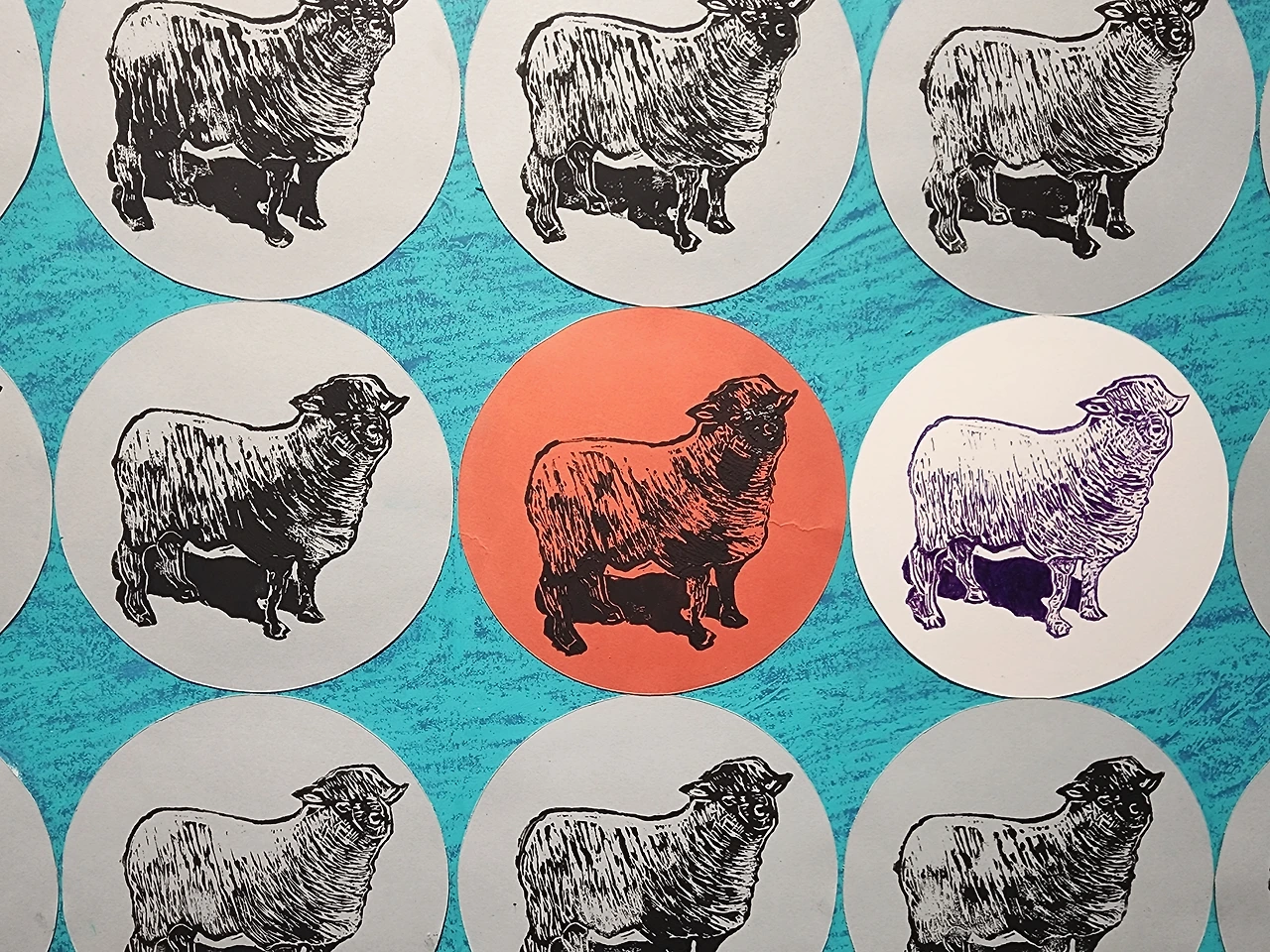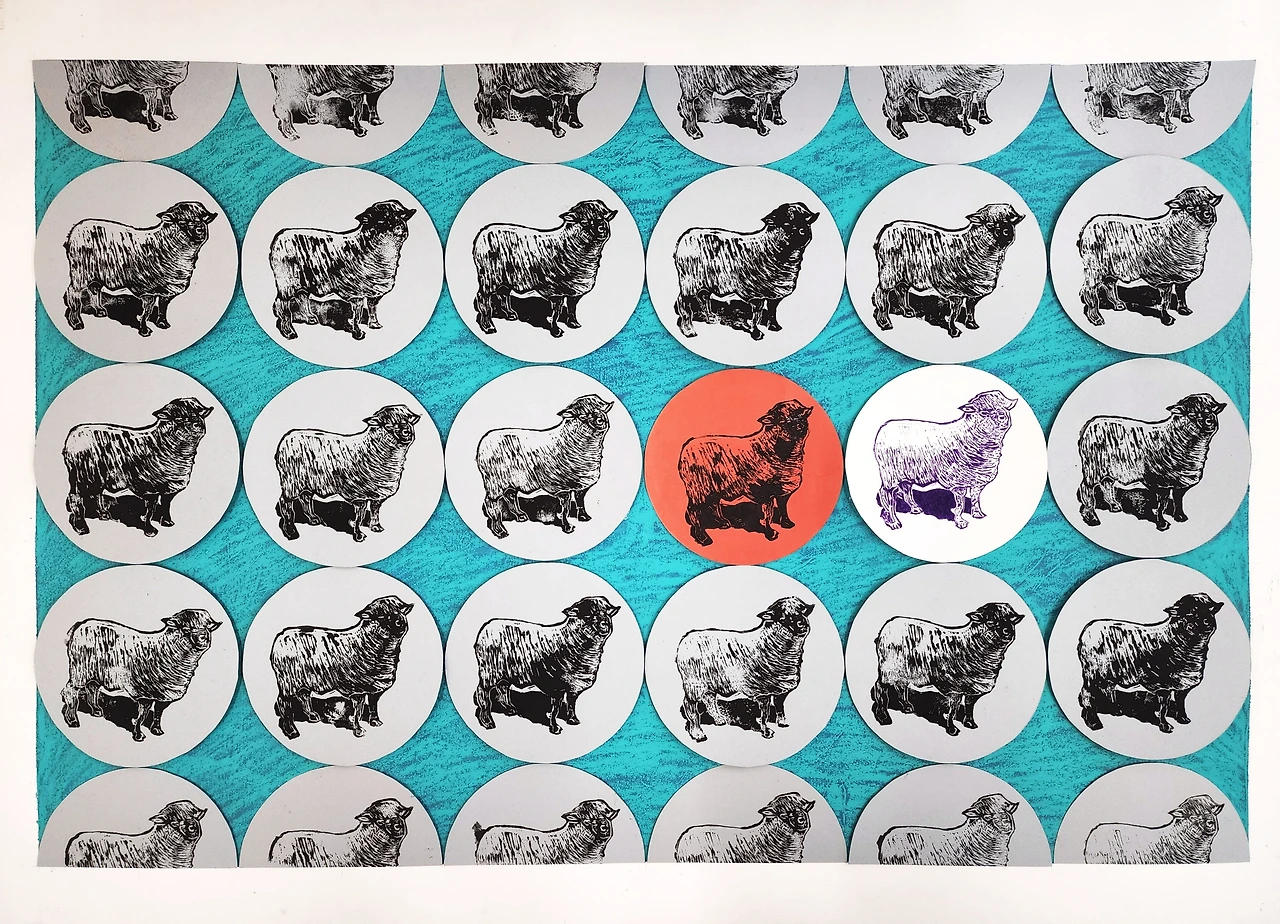 이 작품은 모두가 비슷한 외모와 생각을 가진 무리(Gray) 사이에서 다른 생각의 색을 가진 소수(Red, white)가 전체의 느낌에서 얼마나 힘 있게 다가오는지를 표현합니다.