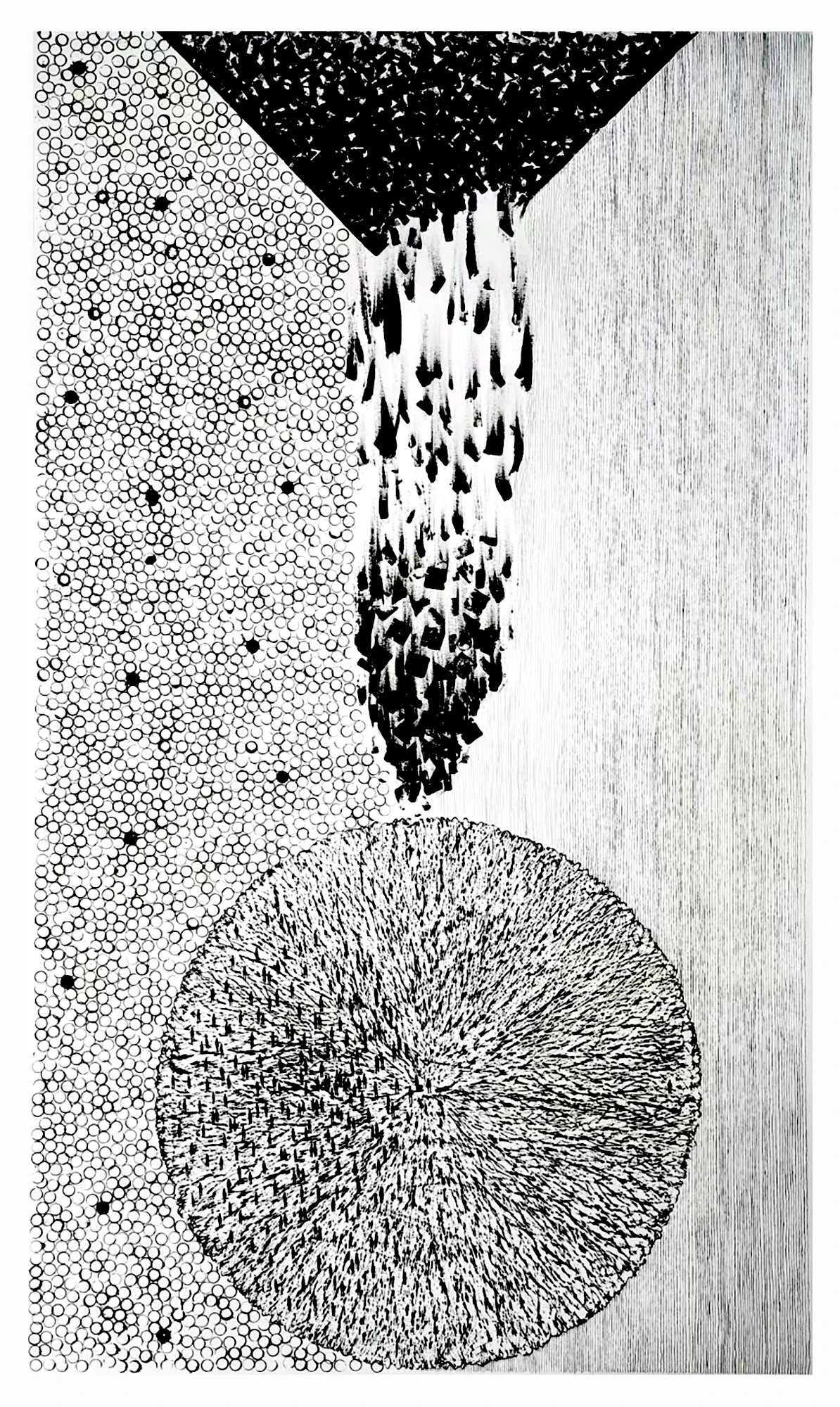 일상의 다양한 기억과 추억들은 원형의 점으로 표현하였고 가는 선들은 흘러간 시간을 의미합니다.