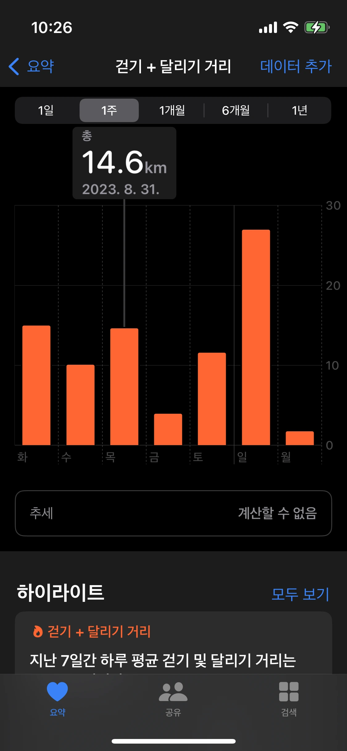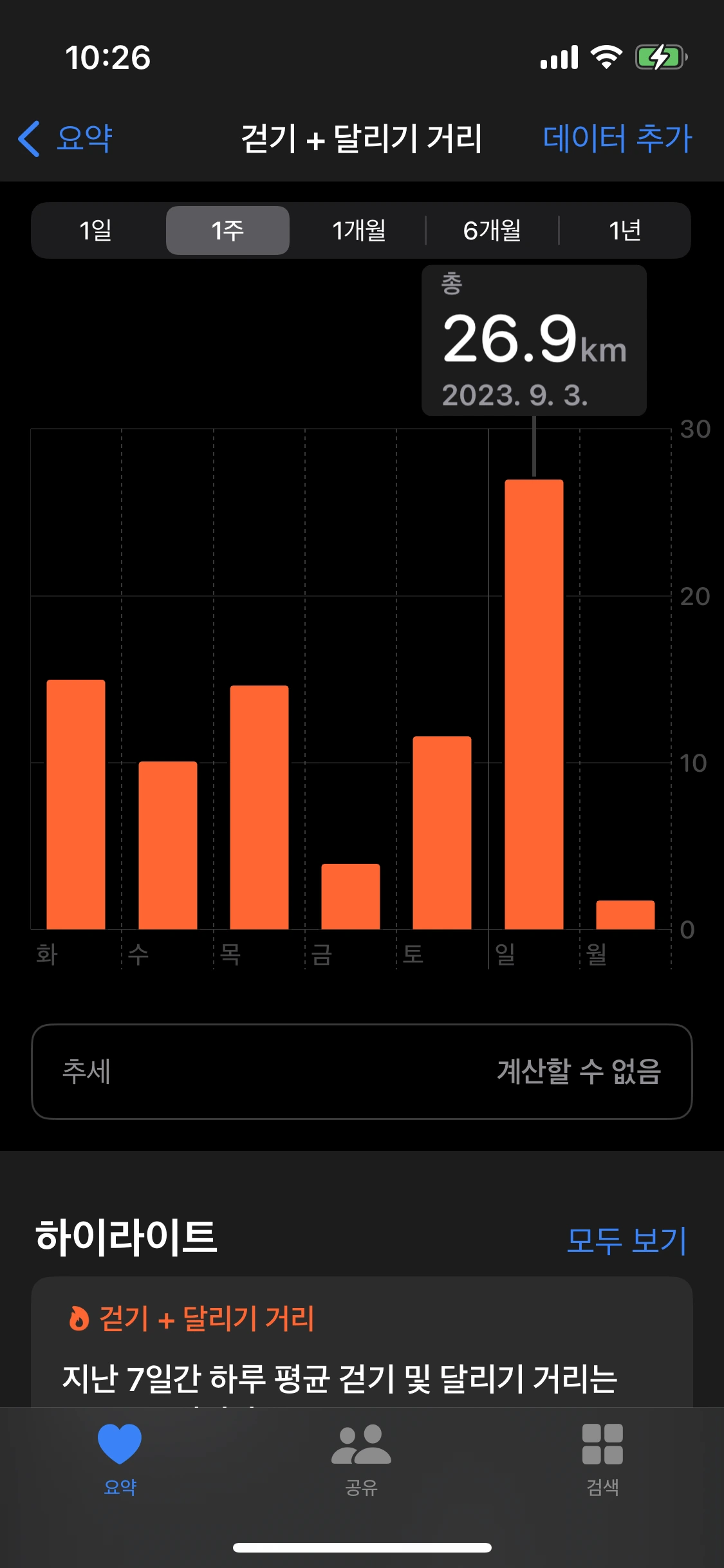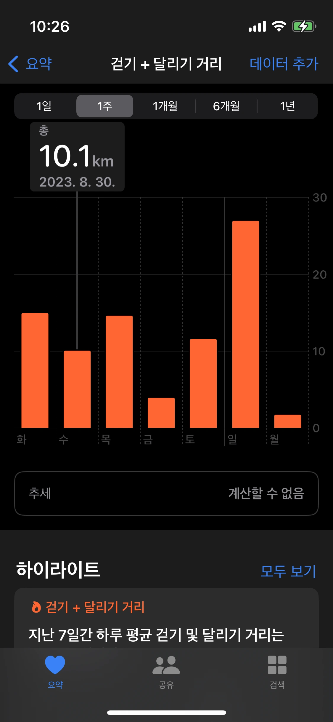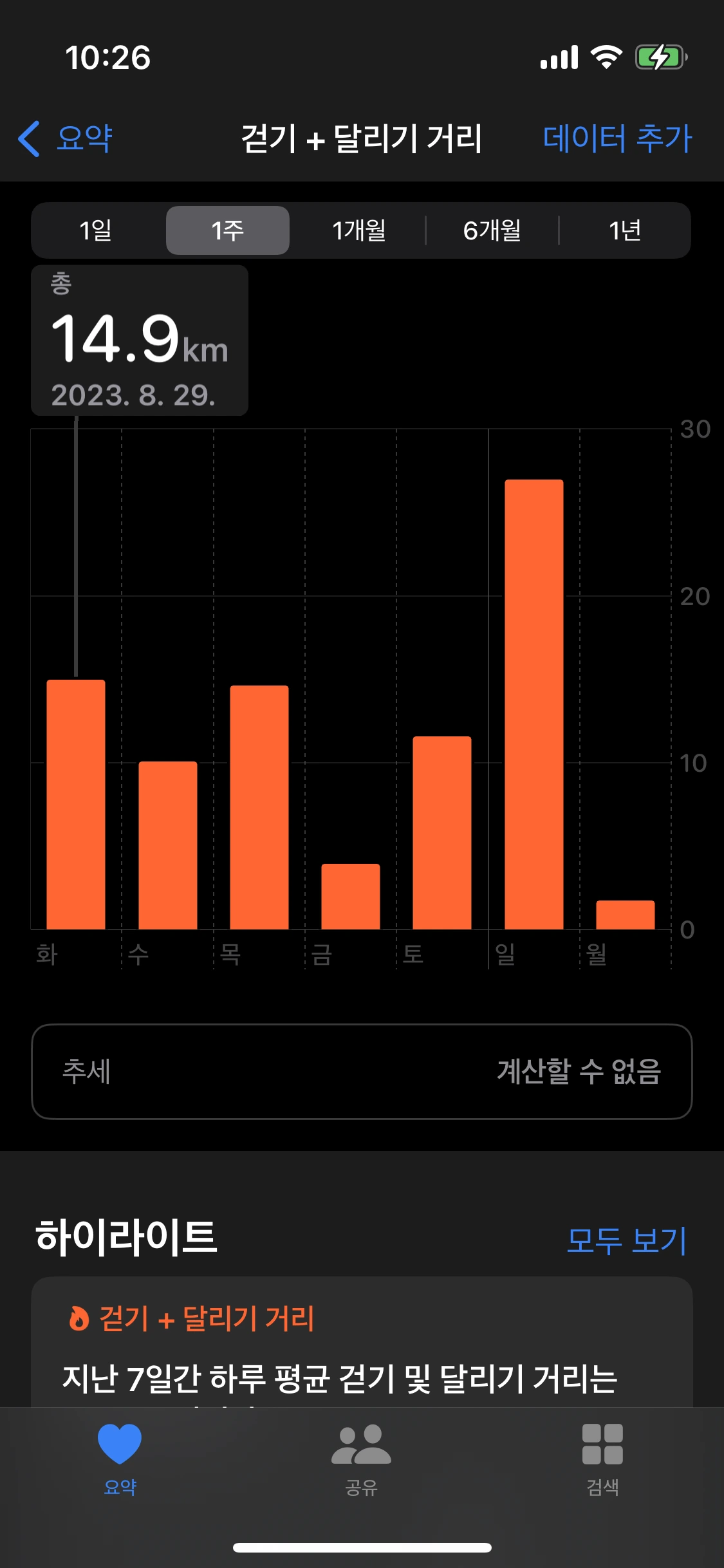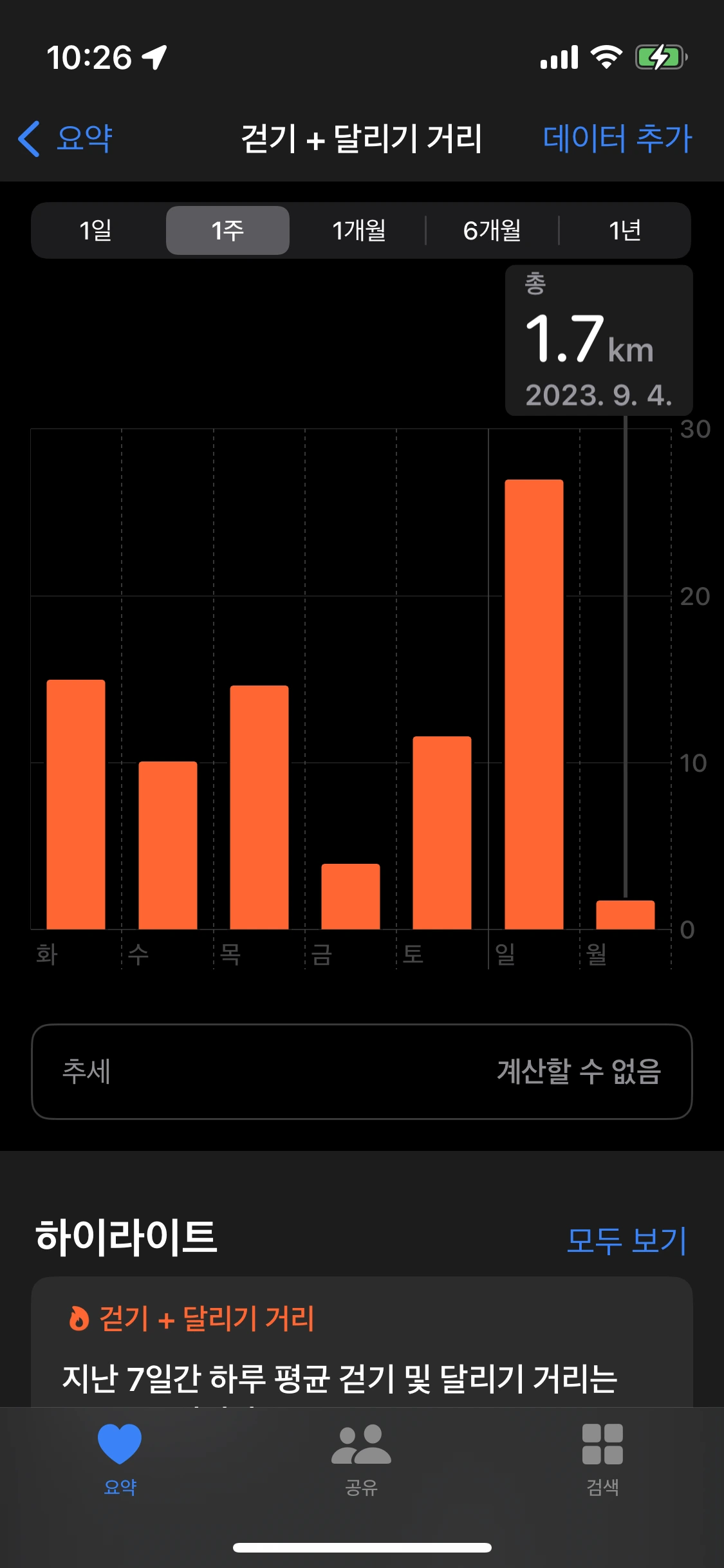 한 주가 지났으니 얼마나 걸었는지 중간점검
