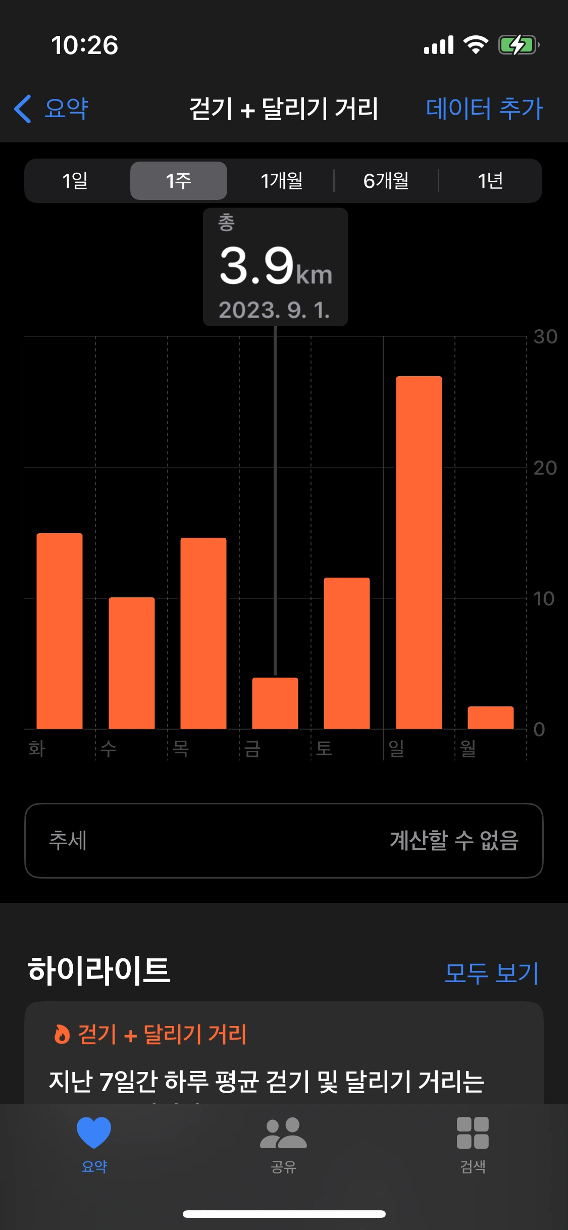 쉬었던 금요일과 월요일은 평균치를 전혀 따라오지 못하는 수준이지만, 다리 근육에도 쉬는 시간을 주어야 꾸준히 걸을 수 있을 테니 꼭 필요한 쉼이었다고 생각.