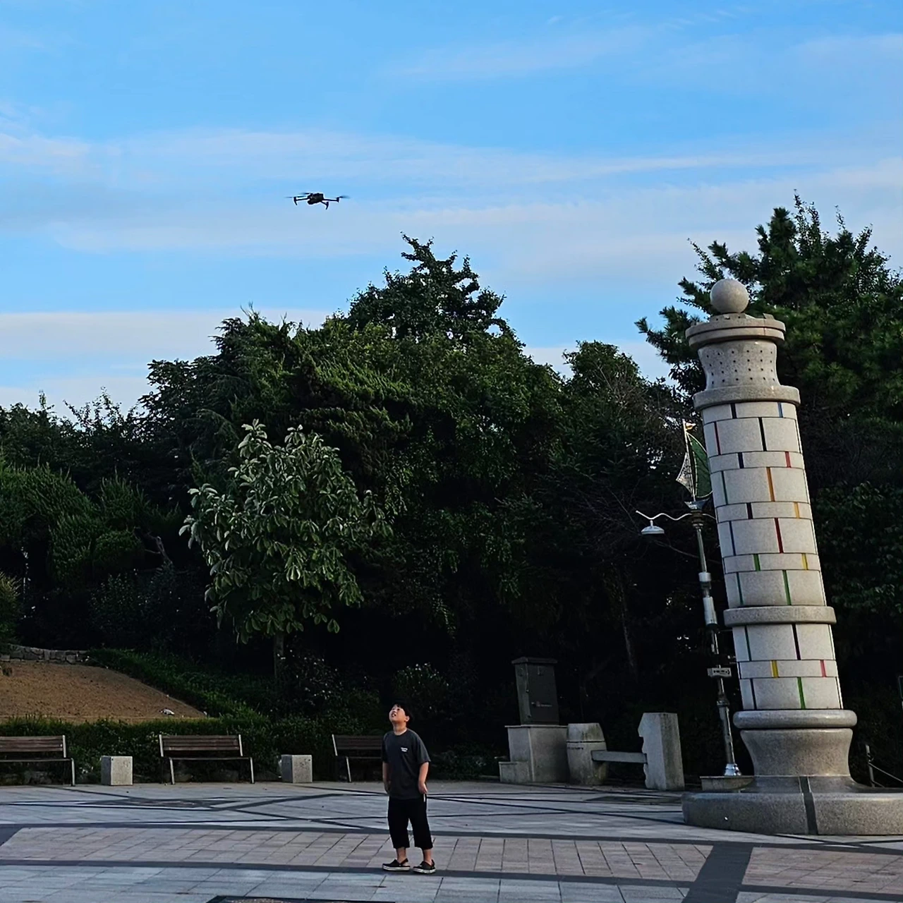 공원 광장에 드론이 떴다. 광장보다 넓은 하늘이 마음껏 펼쳐져 있으니, 젊은이들이 가끔 날린다.