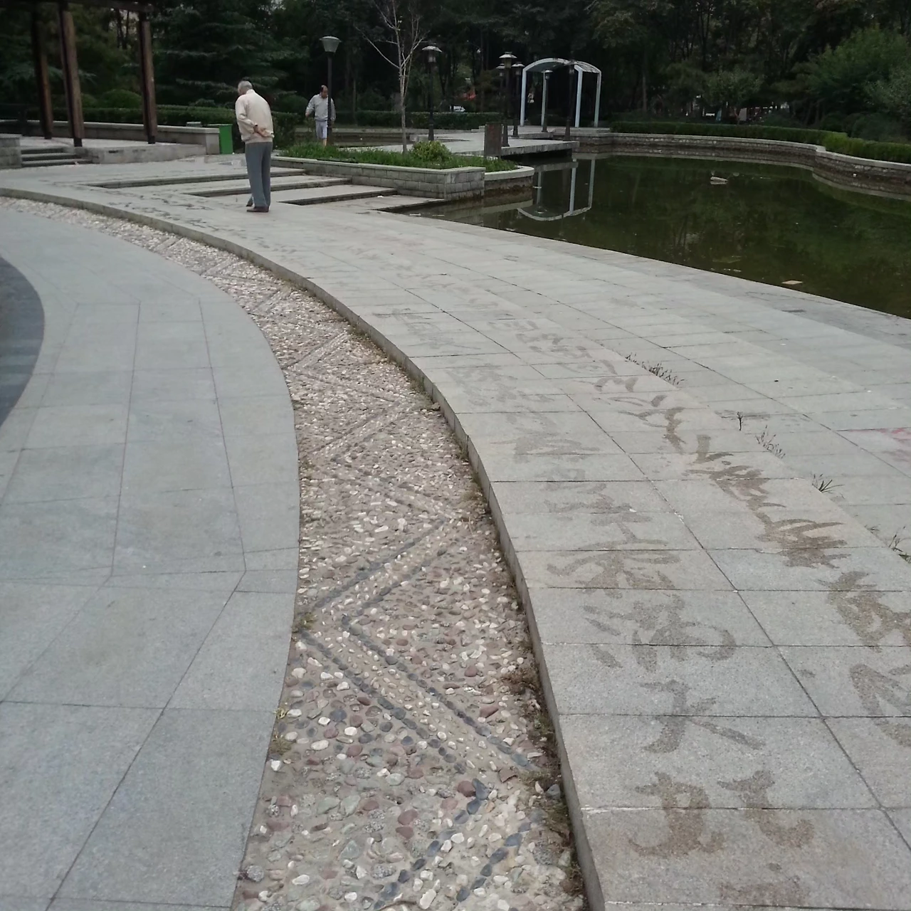 끝으로, "물 위에 이름을 남기듯이 그림을 그리고 싶다"던 어여쁜 처자의 순서가 왔다. 다소 먼 거리라 그런지, 노환 때문인지 잘 보이진 않지만, 윗부분 초록 잎들은 풍성하고 선명한데, 아랫부분 바위와 땅 쪽은 희미하다. 자기소개 때 했던 처자의 말을 떠올리면서 동시에, 소년은 수년 전 중국에서 만난 한 할아버지가 공원 바닥에 큰 붓으로 물을 찍어 문장을 써 내려가던 모습이 오버랩된다.