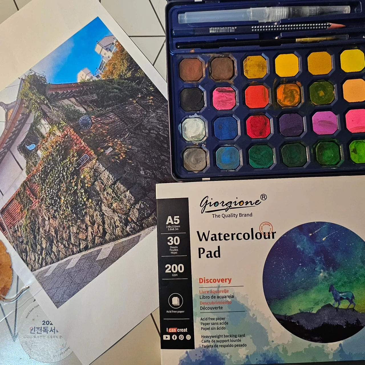 물감, 펜, 연필, 붓들이 담긴 팔레트를 받아 들고는 마치 킬리만자로의 한 마리 표범처럼 동네를 어슬렁거린다. 사진 찍고, 구도 잡고, 명암을 관찰하며 소실점 찍어 하늘에 선도 그어본다. 제법 풍모 그윽한 화백 하나 나셨다. 강의는 휴강이지만 혼자만의 예습을 하고 있다.
