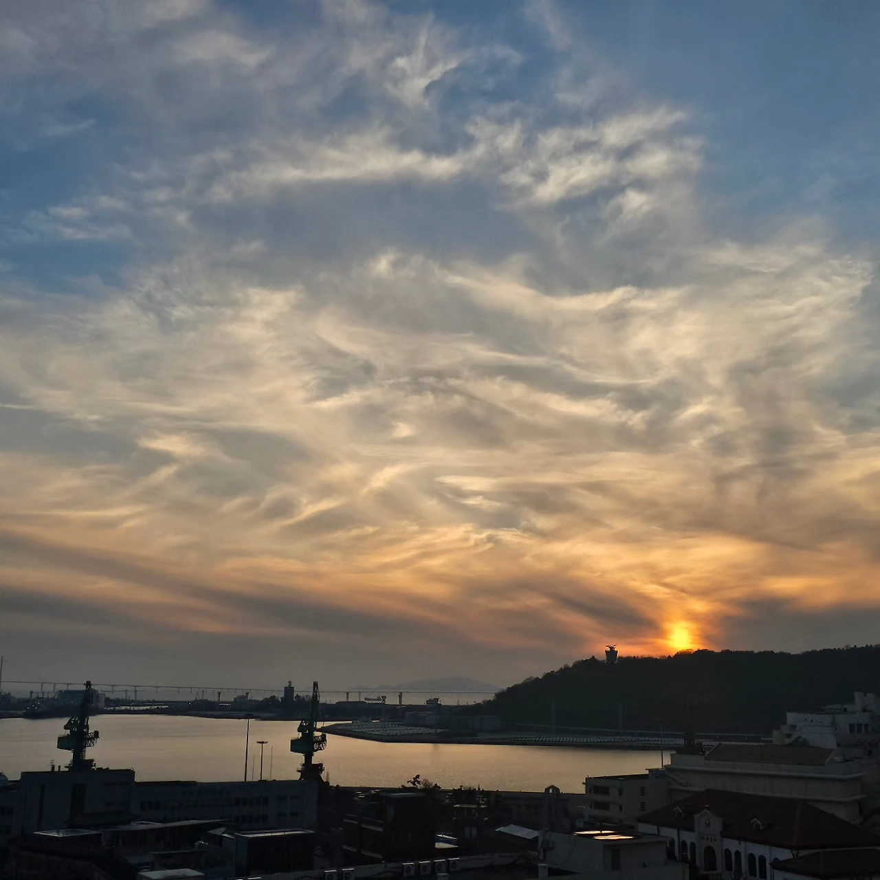 장군은 망원경으로 인천대교 넘어 드넓은 서해로 시선을 확장한다. "아직 이르지만 온다. 저 멀리."