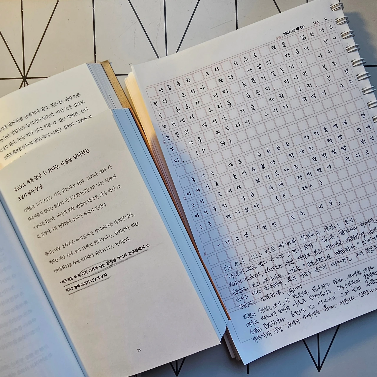 김훈의 <연필로 쓰기>를 꼼꼼히 읽으며 왼손 필사하고 있다.