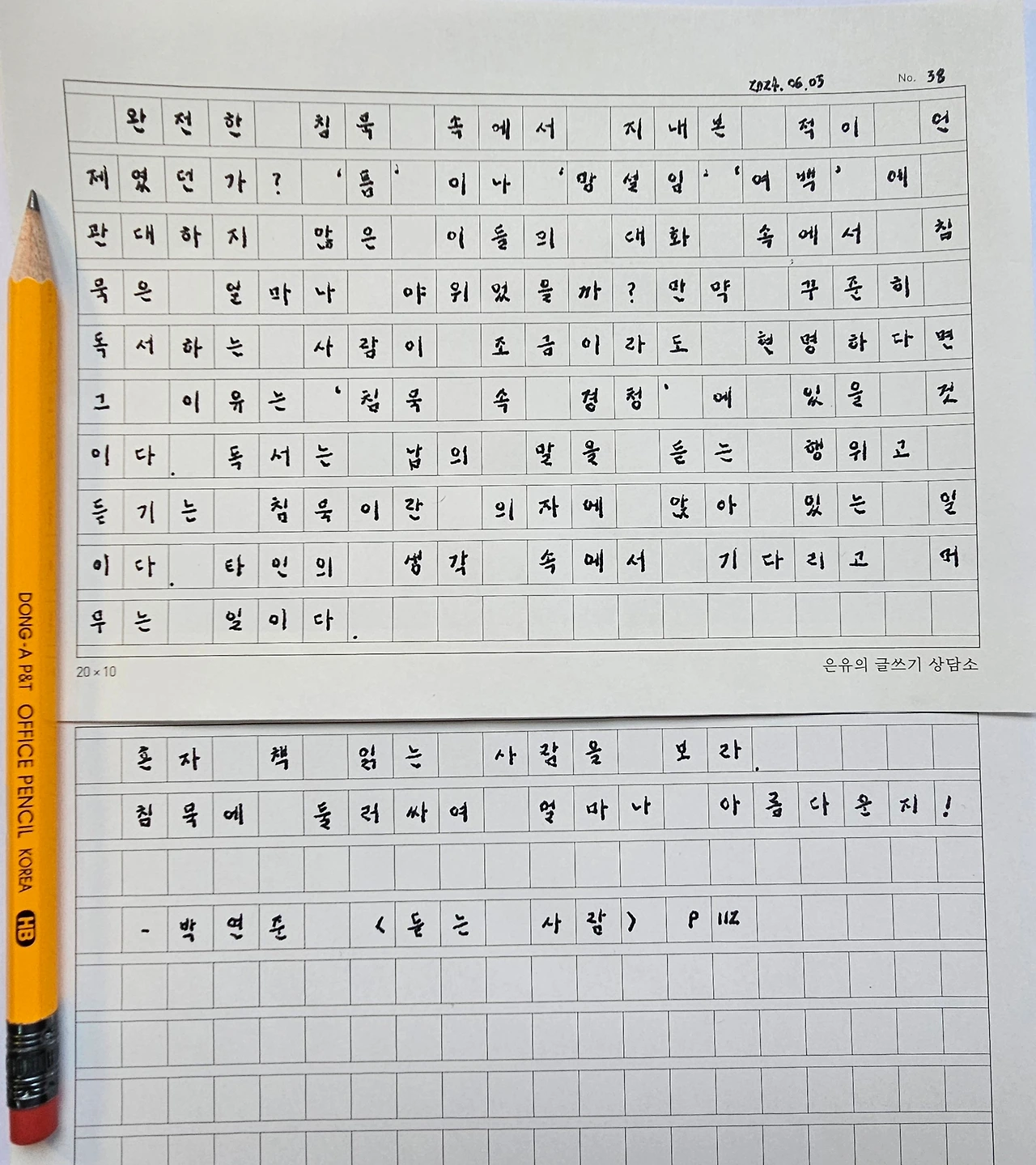 '틈'이나 '망설임', '여백'에 관대하지 않은 이들의 대화 속에서 침묵은 얼마나 야위였을까?