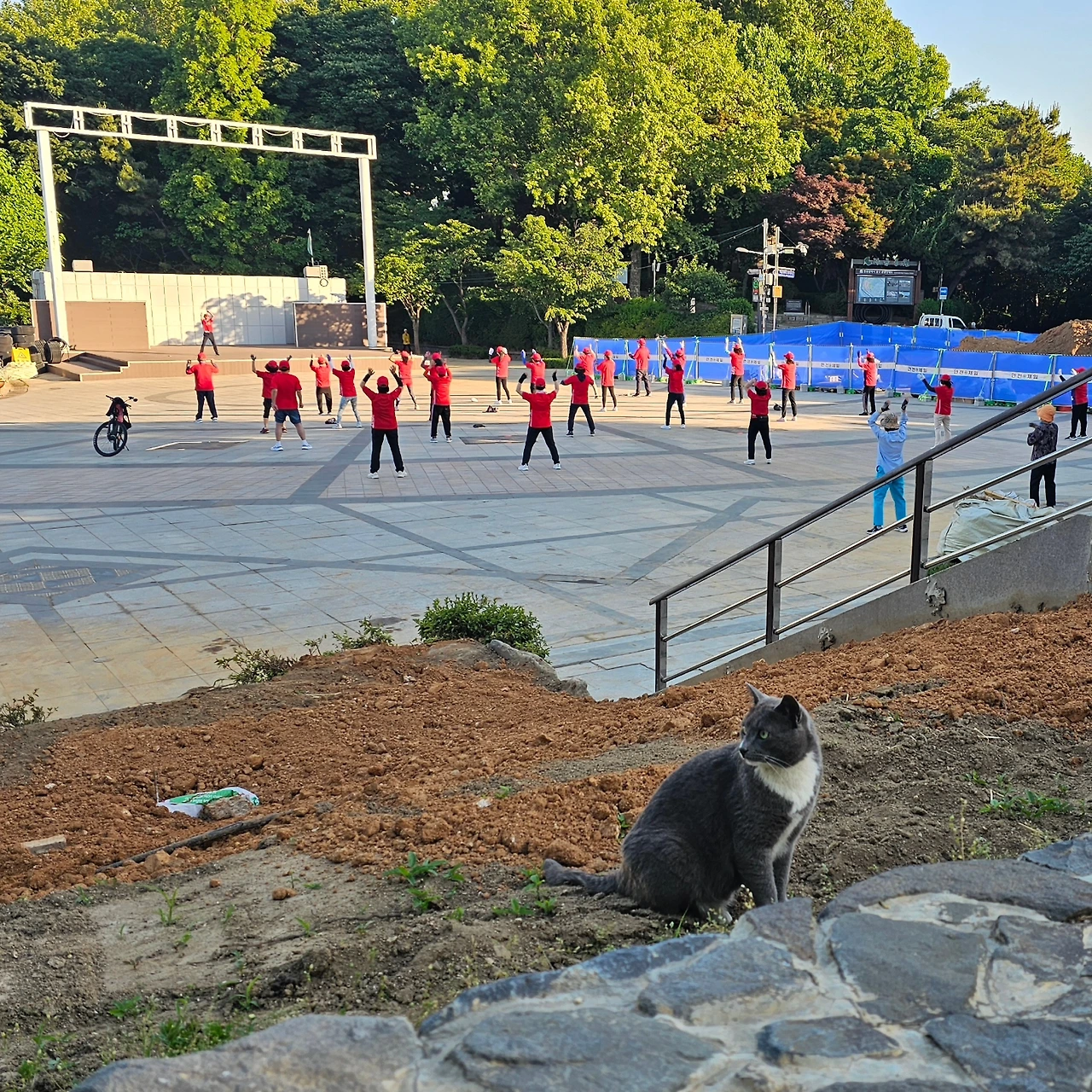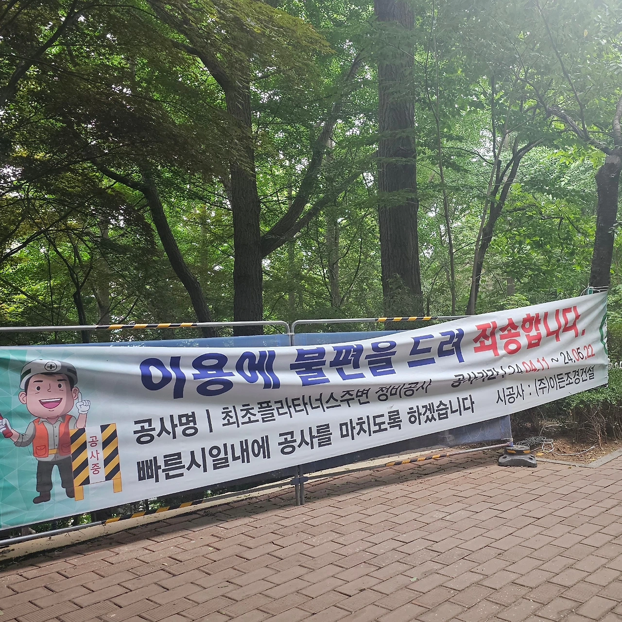 공사 중인 공원 한켠에선 축제의 노래 부르고