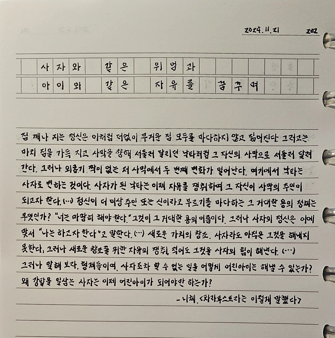 저자의 의도와 맞든 안 맞든 나만의 해석인 한 문장으로 정리해 보니, 이런 내가 제법 대견스럽기도 하다. 이제 남은 건 실행뿐이겠지.