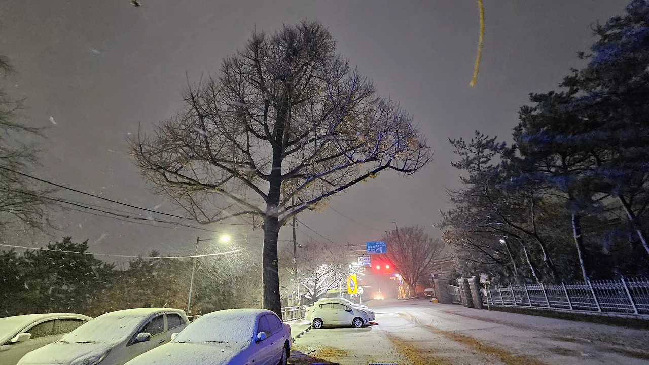 밤새 비 오는 소리에 뒤척였는데, 새벽에 방문 열어보니 온 세상 하얗게 눈이 내렸더군요. 핑크색방 빗자루로 제방과 옆방 어머니방 문 앞에 급한 데로 길을 냅니다. 손바닥만 한 빗자루지만 순식간에 눈을 치웁니다. 군대 다녀온 이 땅의 남자들은 눈과의 전투에 아주 선수들이라죠?