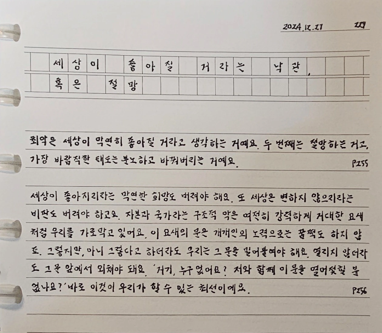 아무리 지금이 괴로워도 잊지 않고 잃어버리지 않고 고이 품고 있다면 그래서 그것을 목놓아 함께 외친다면 세상은 조금씩이라도 옳은 방향으로 나아갈 것이고 입맛, 사는 맛은 한 모금 한 모금 돌아오리라.