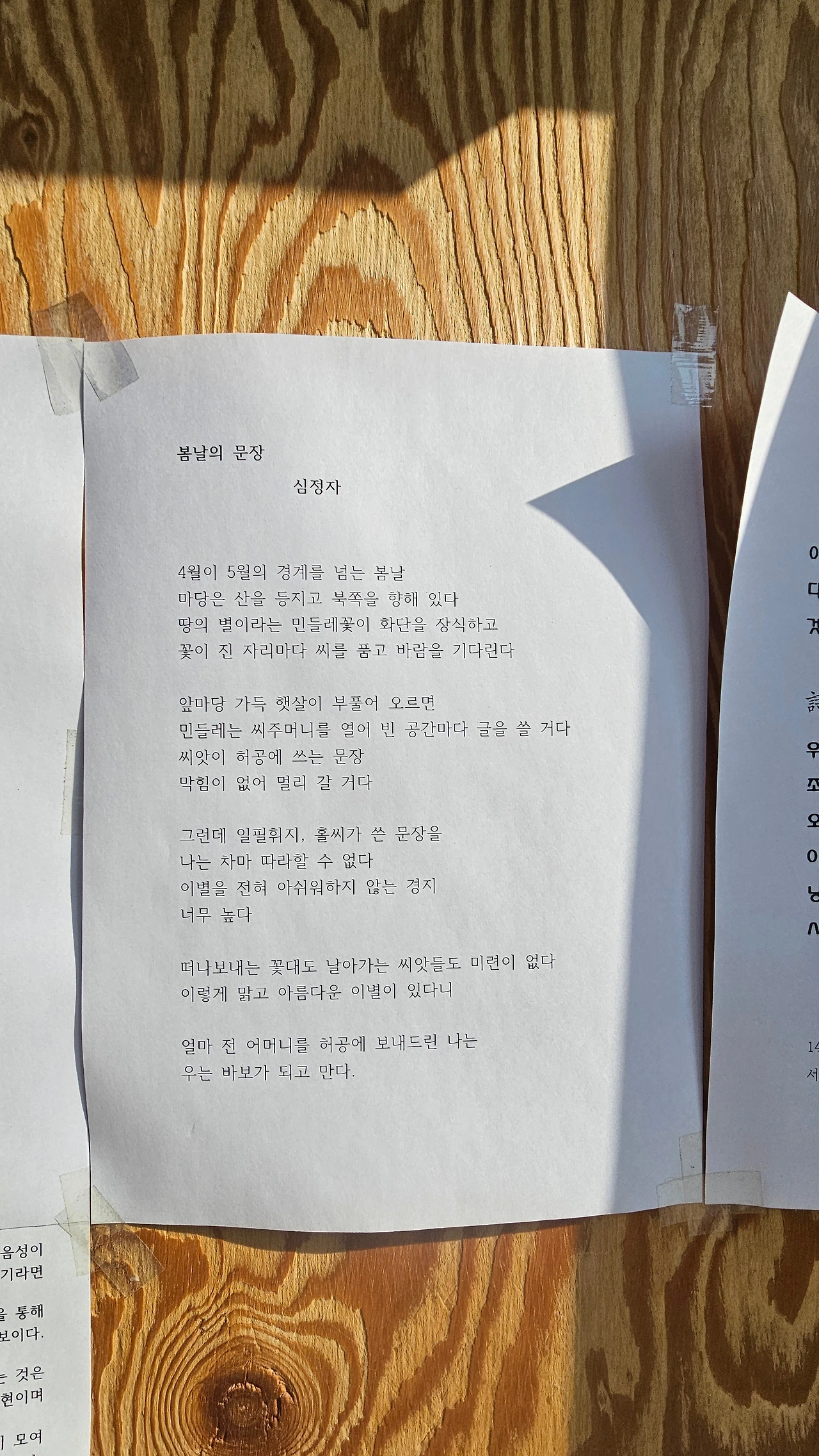 통성명을 안 했지만 나는 알 수 있다. 그녀의 이름은 <새봄>이 분명하다. 성씨는 <이>씨 일거다. 그러니
