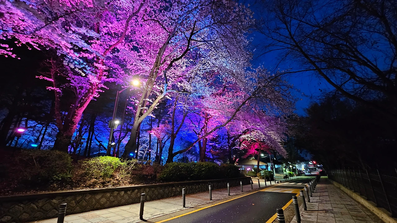 공원 봄 꽃들은 끈덕지게 살아남았다