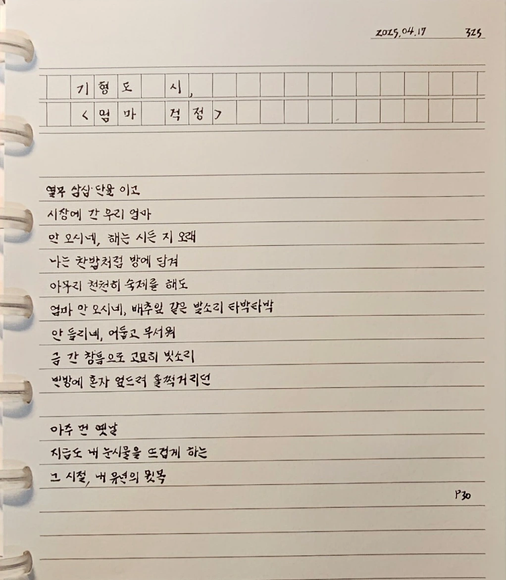 #엄마 #어머니 #엄니 #주단포목 #이화상회 #필사적인문장공부 #기형도 #시 #엄마걱정 #왼손필사