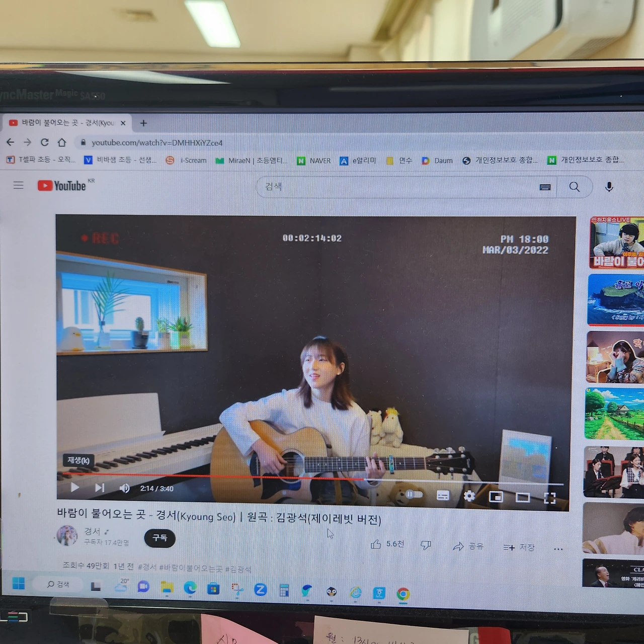 "너희 부모님은 잘 아시는 가수야..... 이 곡은 김광석 노래로 더 잘 아실 거야."
