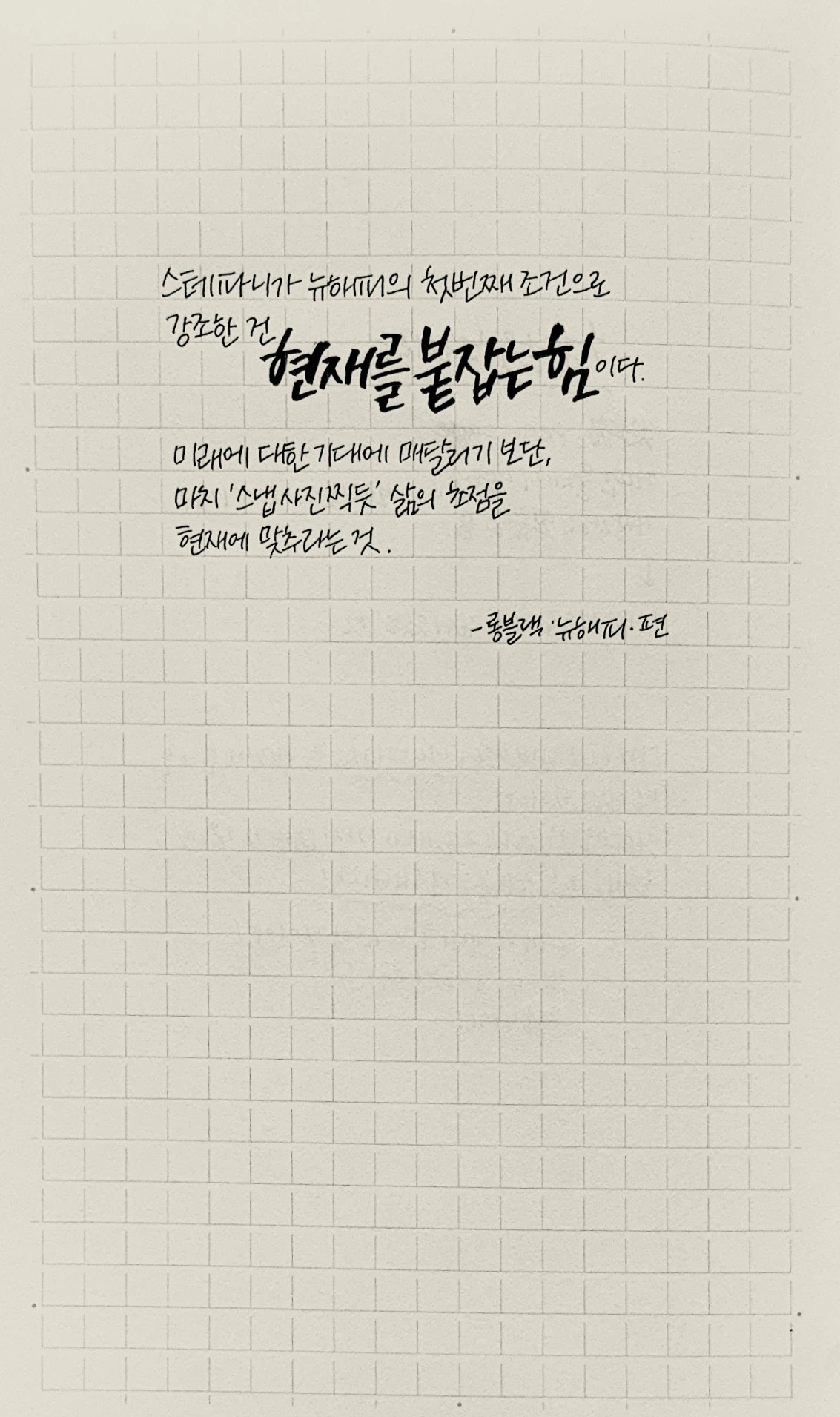 미래의 나는 지금보다 손톱만큼이라도 더 나아져 있을 거라는 믿음이 강해졌다. 지금의 내가 가만히 있지 않기 때문이다.