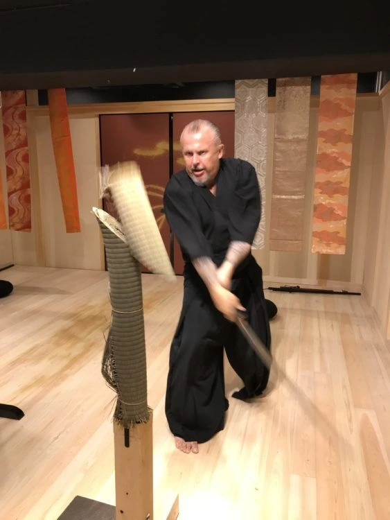 위의 사진과 같이, 자연스럽게 오른손잡이 기준으로 당신은 오른쪽 위에서 왼쪽 아래로 짚단을 베어내게 될 것이다. 그렇지 않다 느껴진다면, 오른쪽 아래에서 왼쪽 위로 칼을 휘둘러 짚단을 베어 보라.
