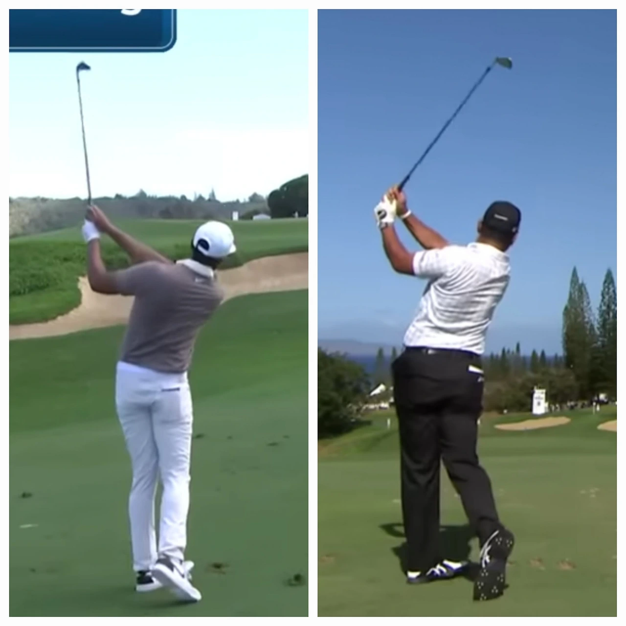 주말에 어머니 생신을 겸해 공주에 있는 본가에 내려왔다. BBQ 파티를 끝내고 잠깐 PGA 개막전 하이라이트 영상을 보다가 같은 스윙을 발견하고 기쁜 나머지 아이패드를 펼쳐 들었다. 두 프로의 스윙을 캡처해 올려드린다. 왼쪽은 토니 피나우, 오른쪽은 마쓰야마 히데키의 아이언 스윙이다.