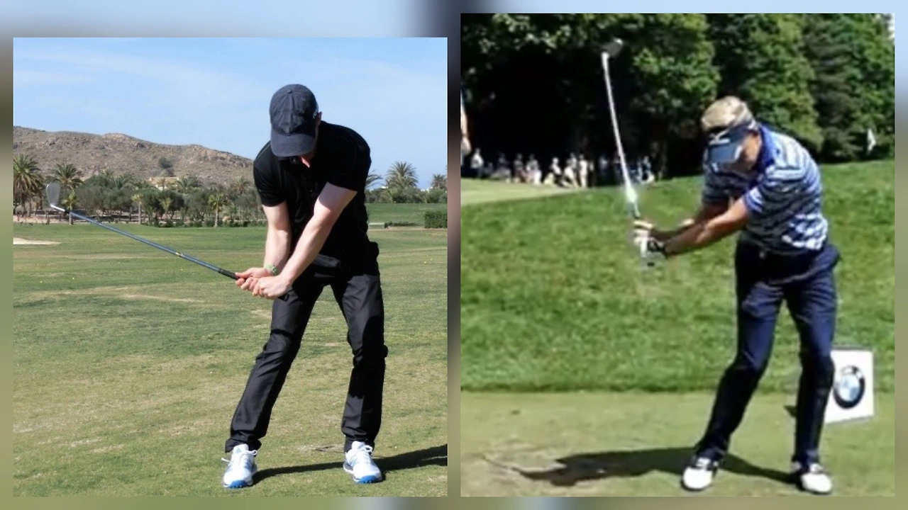 컨벤셔널 스윙에서도 오른 팔꿈치를 끌고 들어오라고 가르치는데?라고 생각할 수 있다. 맞다. 컨벤셔널 스윙에서도 팔꿈치를 끌고 들어와야 한다고 가르친다. 그런데 컨벤셔널 스윙에서 래깅의 정석이라고 강조하는 세르히오 가르시아의 스윙을 보면 좋은 래깅은 손목의 코킹이 유지되는 것이라고 설명한다. 그래서 다운스윙에서 손목을 오른쪽 허벅지 쪽으로 내리면서 코킹을 유지해 래깅을 만들고, 그 딜레이 히팅의 힘을 이용해 공을 강하게 타격하는 원리라고 설명한다. 이것이 가장 큰 차이점이다. 바디 스윙에서의 다운스윙 손목 방향은 다이렉트로 공을 향한다. 컨벤셔널 스윙에서의 다운스윙 손목 방향은 오른쪽 허벅지를 향한다.