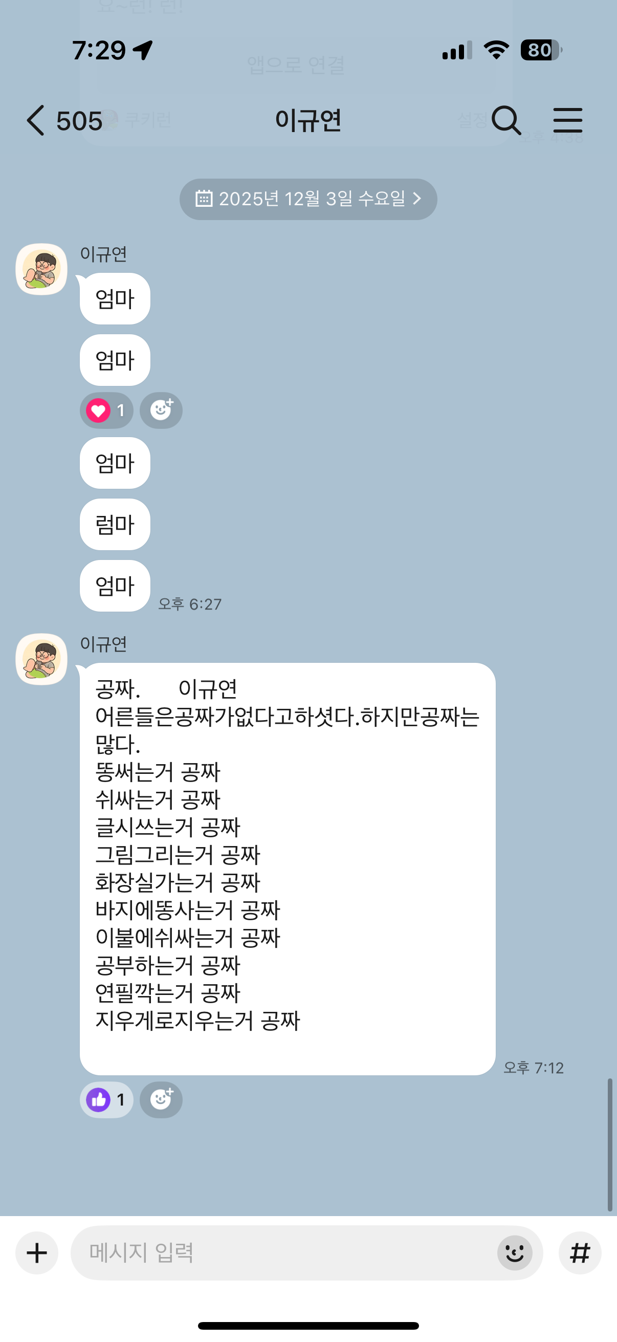 “아 왜 엄마는 순서를 이상하게 적어.”
