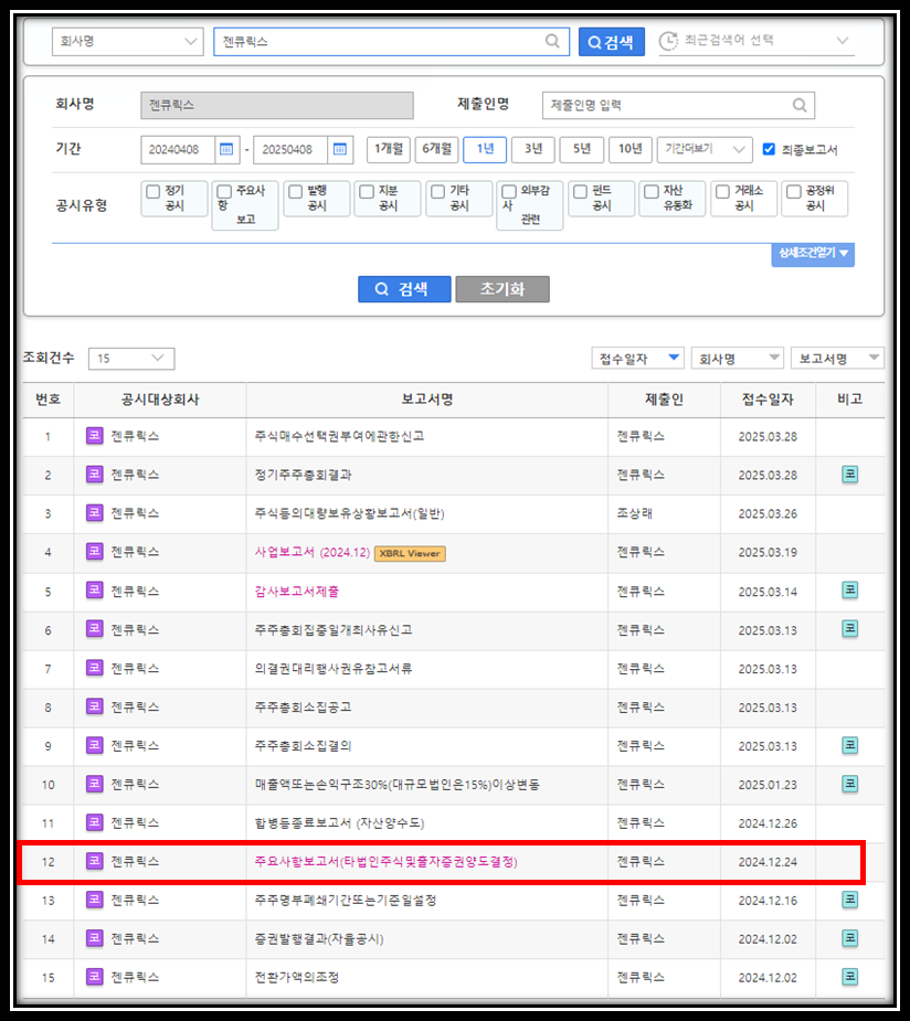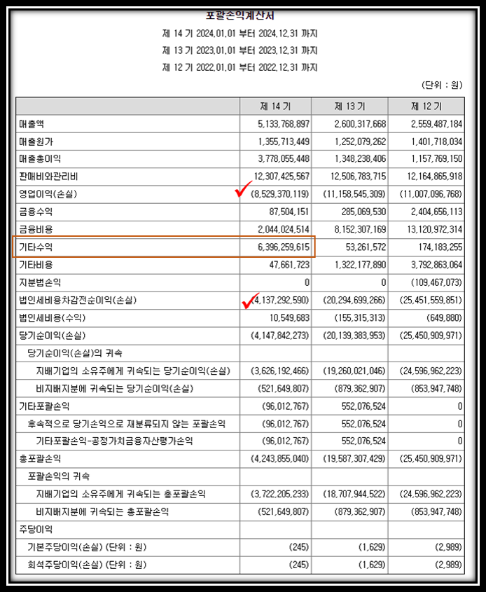 그런 관점으로 2024년 젠큐릭스의 손익계산서를 한 번 보겠습니다.