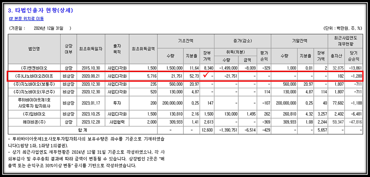 역시나 매각대상이 된 '나노바이오라이프'의 주식가치는