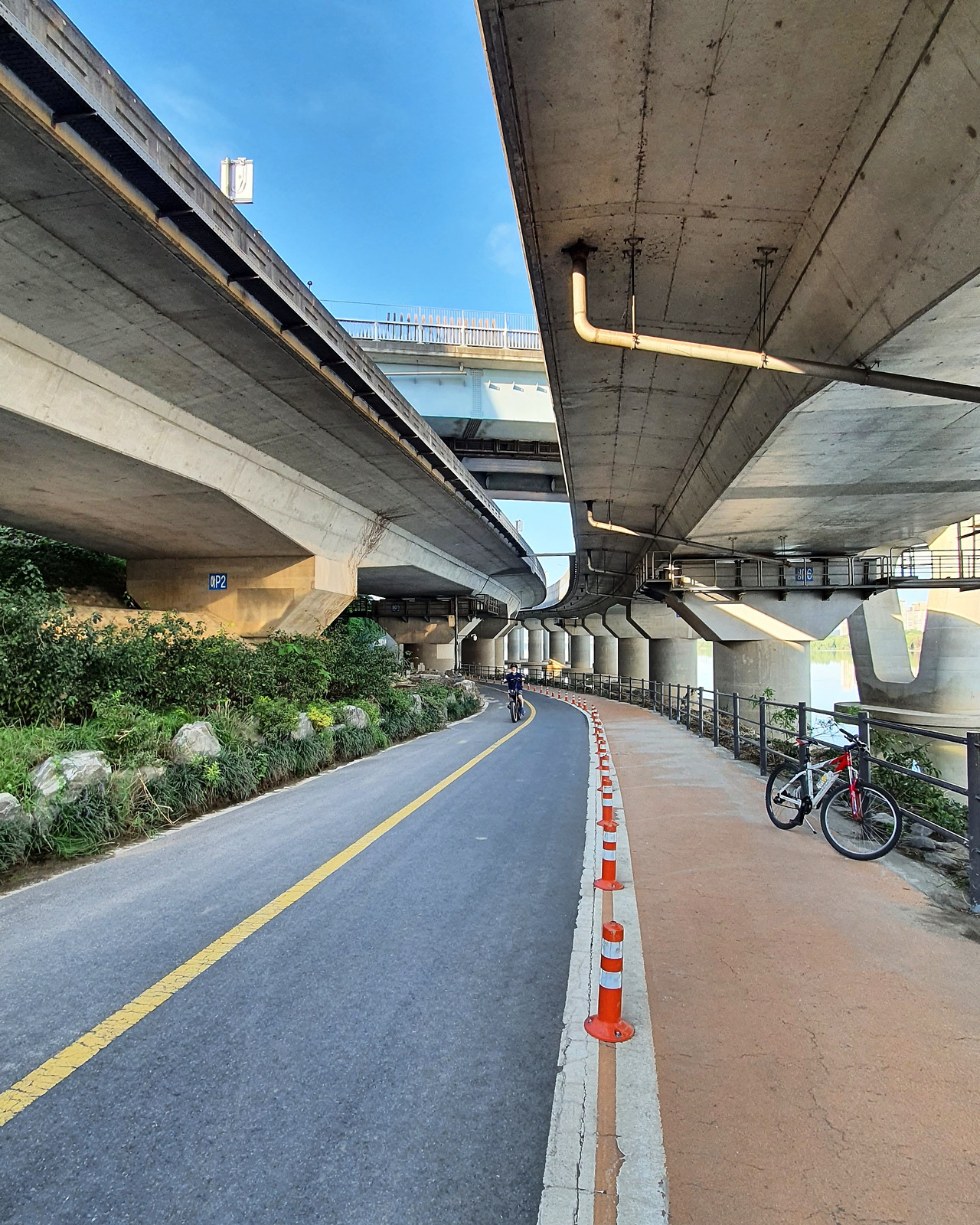 한강 자전거길. 달려가다 보면 언젠가 하늘이 보이겠지. Ⓒ권이철