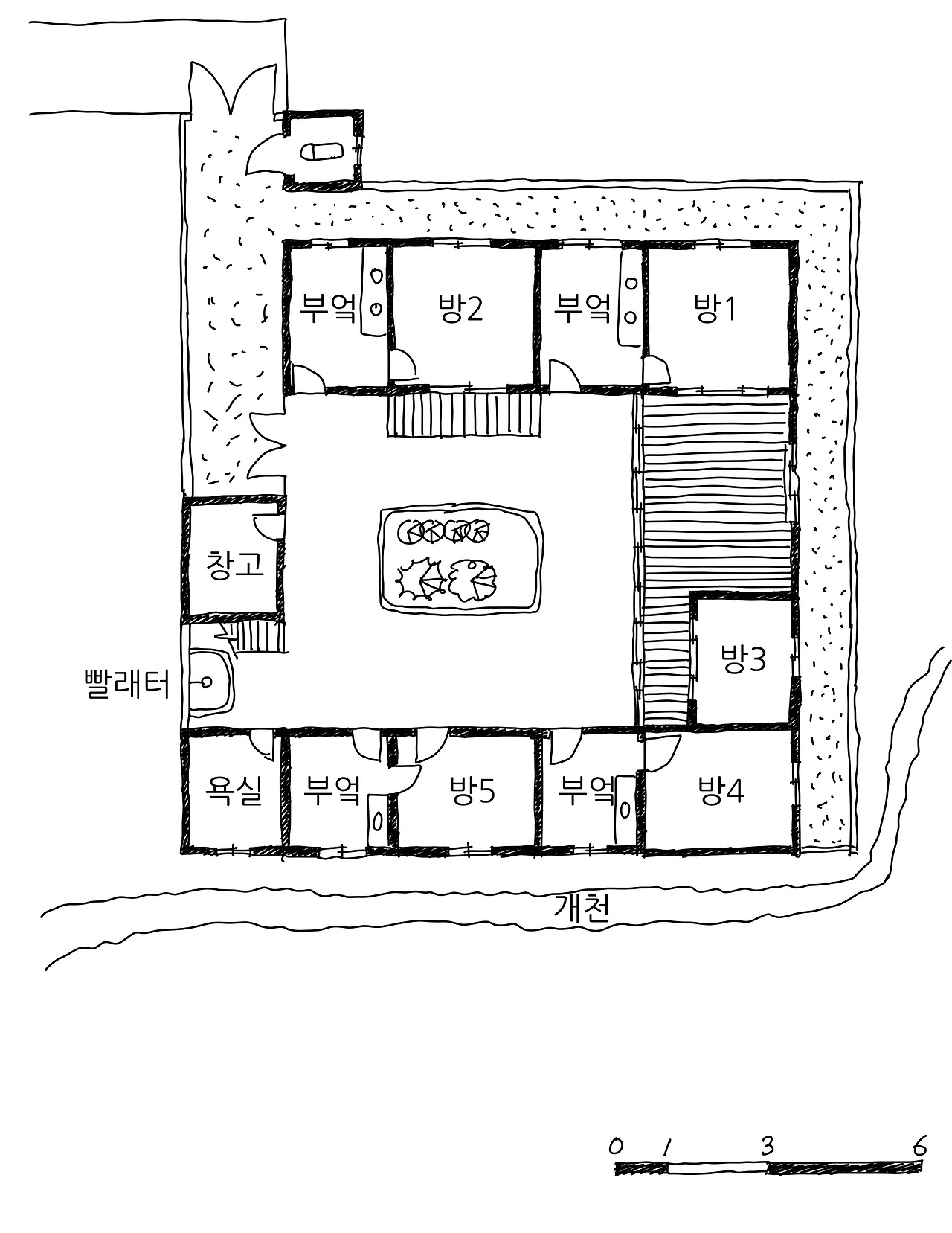 처음으로 집이 어떻게 생겼는지를 알게 해주는 순간으로 모르는 집을 처음 스케치로 만날 때가 가장 설렌다. 개략적인 집 스케치로도 어떤 집이었는지 머릿속으로 상상이 되었다. 누구나 자신이 살았던 집에 대한 공간 인식은 기본적으로 가지고 있다. 내 방과 건넌방, 그리고 거실, 화장실, 마당 등. 그 공간의 연결과 구성은 그림과 말로 어떤 형태로든 표현이 가능하다. 그것이 우리가 아는 건축 평면도 같이 나오지는 않지만, 어떤 형태인지, 구성인지를 파악하는 데는 전혀 부족함이 없다.